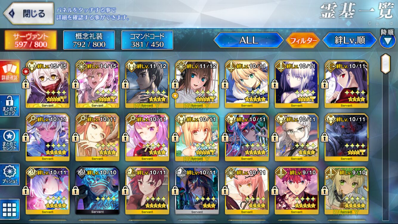 やろうと思えばいつでもできる状況であるけどストーリーを共に歩んで絆をあげたいという思考上ちょっとね絆15……今のところナポレオンだけですね。