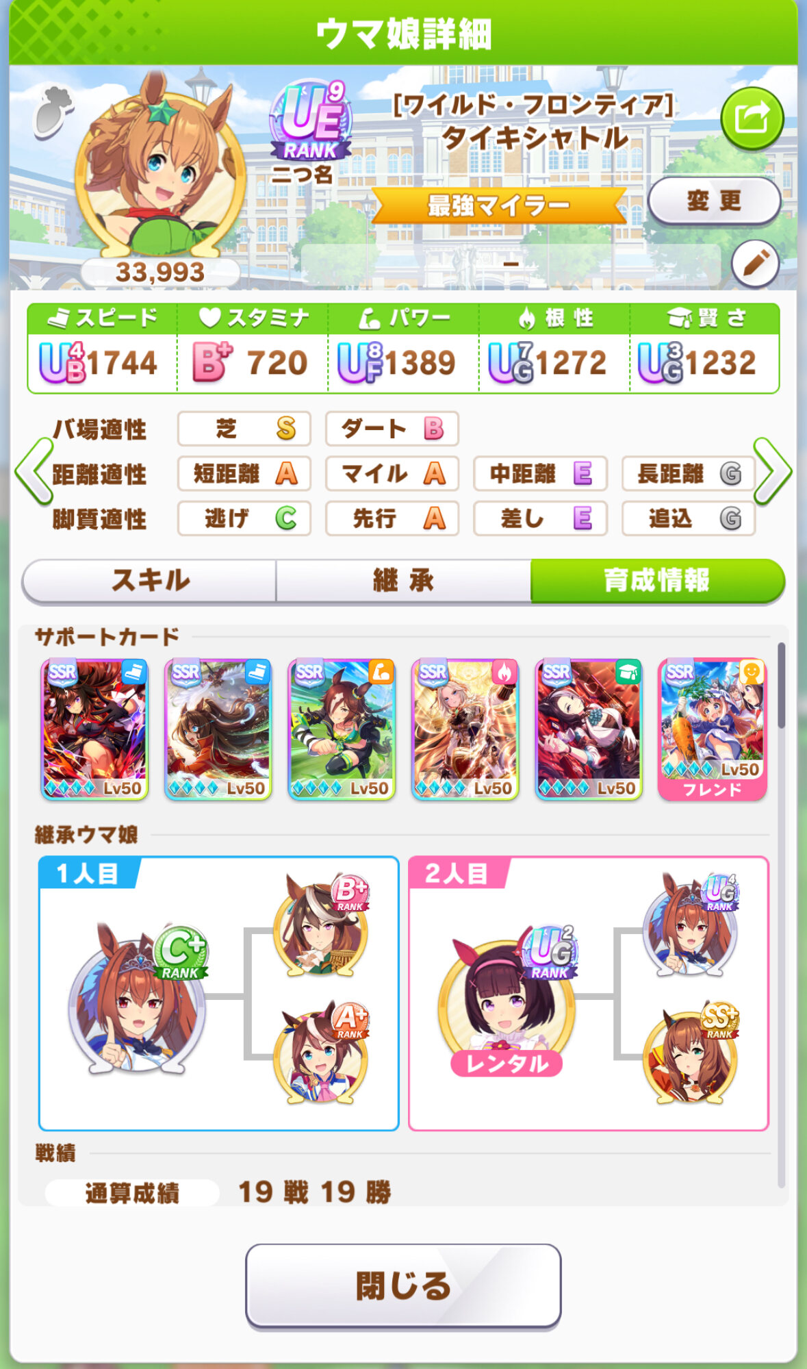 スピードの上限値そこまで変わらんし、マイル作りは用途に応じてUAFと代わりばんこかなと思っていたら