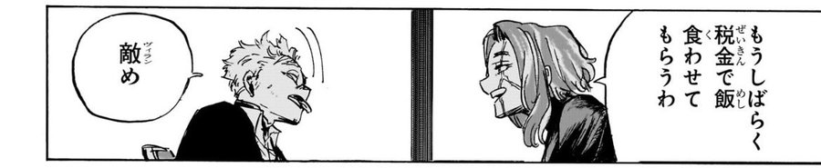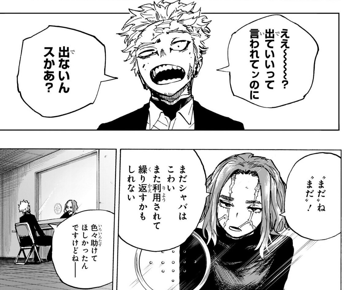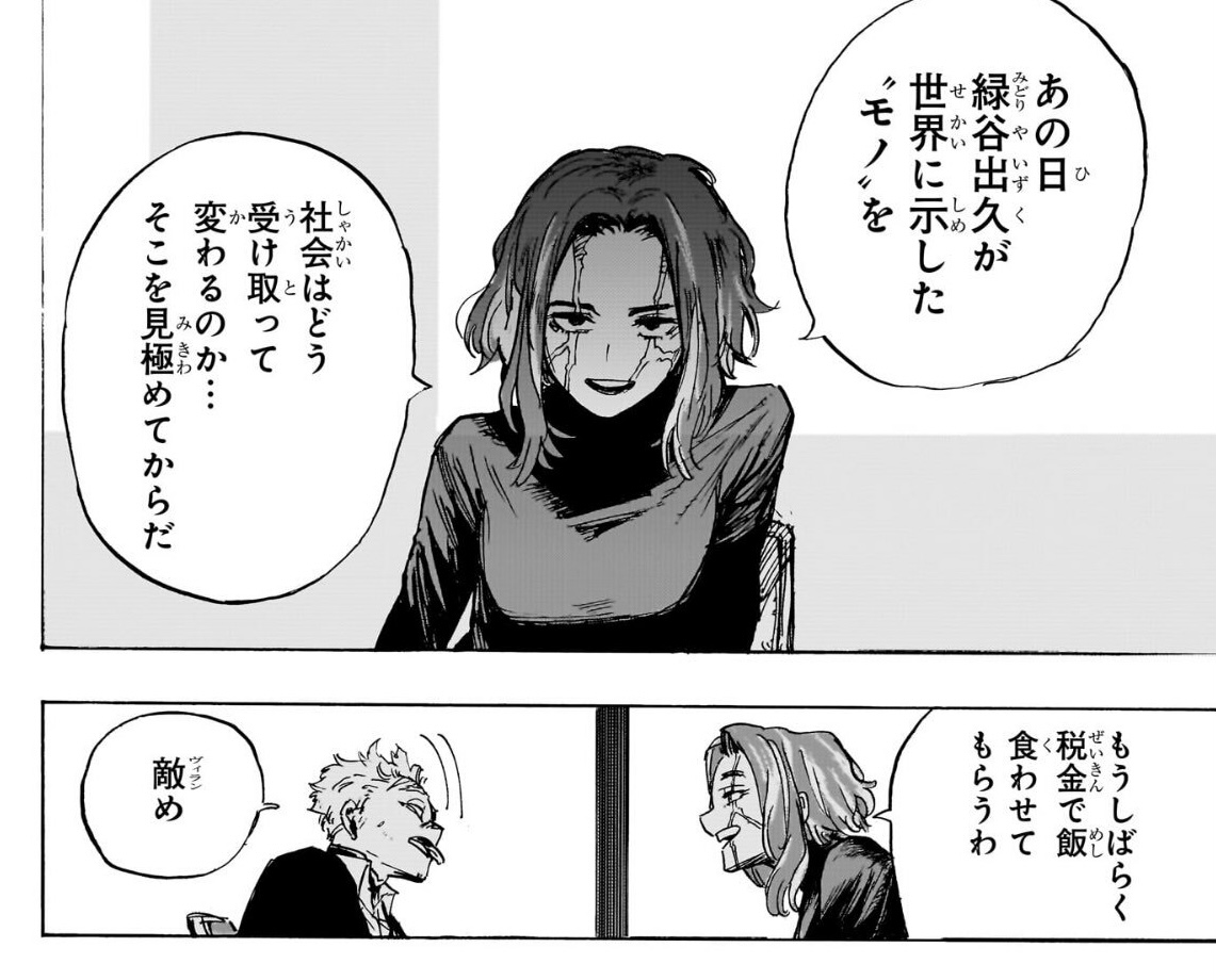 辞める=死だったから上司殺して辞表叩きつけた件抜きにしても国家転覆テロリストに協力してヒーロー攻撃した件はラスト協力してからでチャラでタイミングみて復職するっていうゆるい気はしないでもない