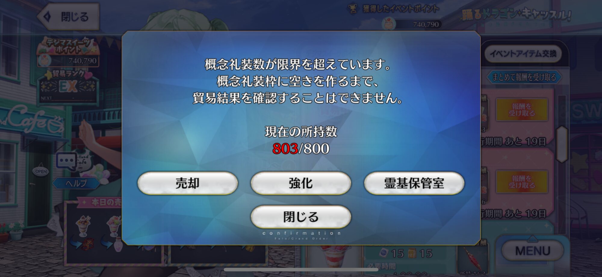 再臨素材まったく交換してないのにポイント終わっちゃったからこれからポイントが余りまくる…レート10:1で良いからスイーツの材料同士で交換で交換できたらなぁ