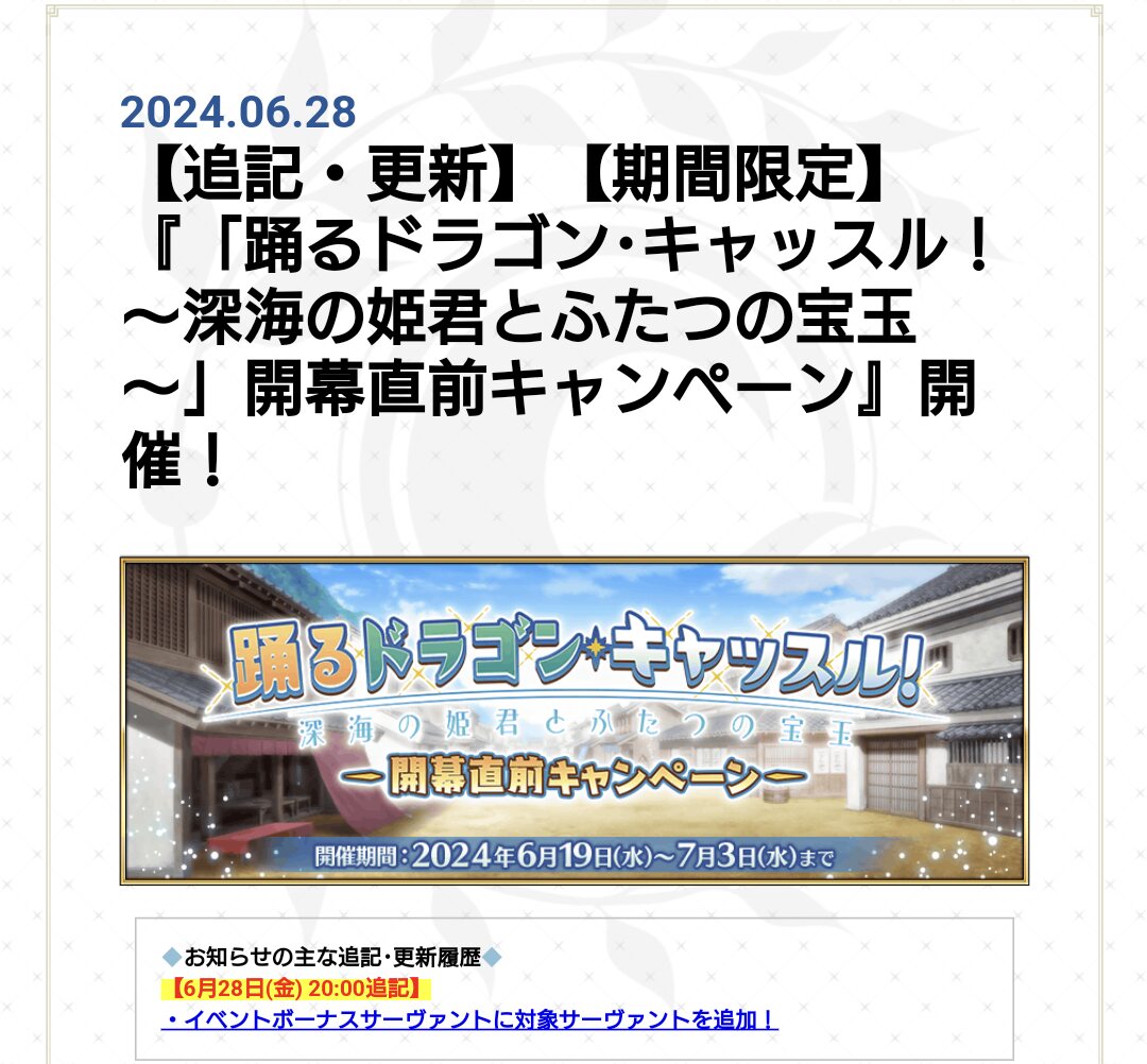 2024年6月28日(金)20:00~7月19日(金)12:59まで