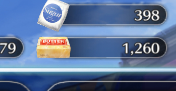 これが糖剣乱舞…。バターが余る現象、多分需要の高い羽根と種が何割かの原因
