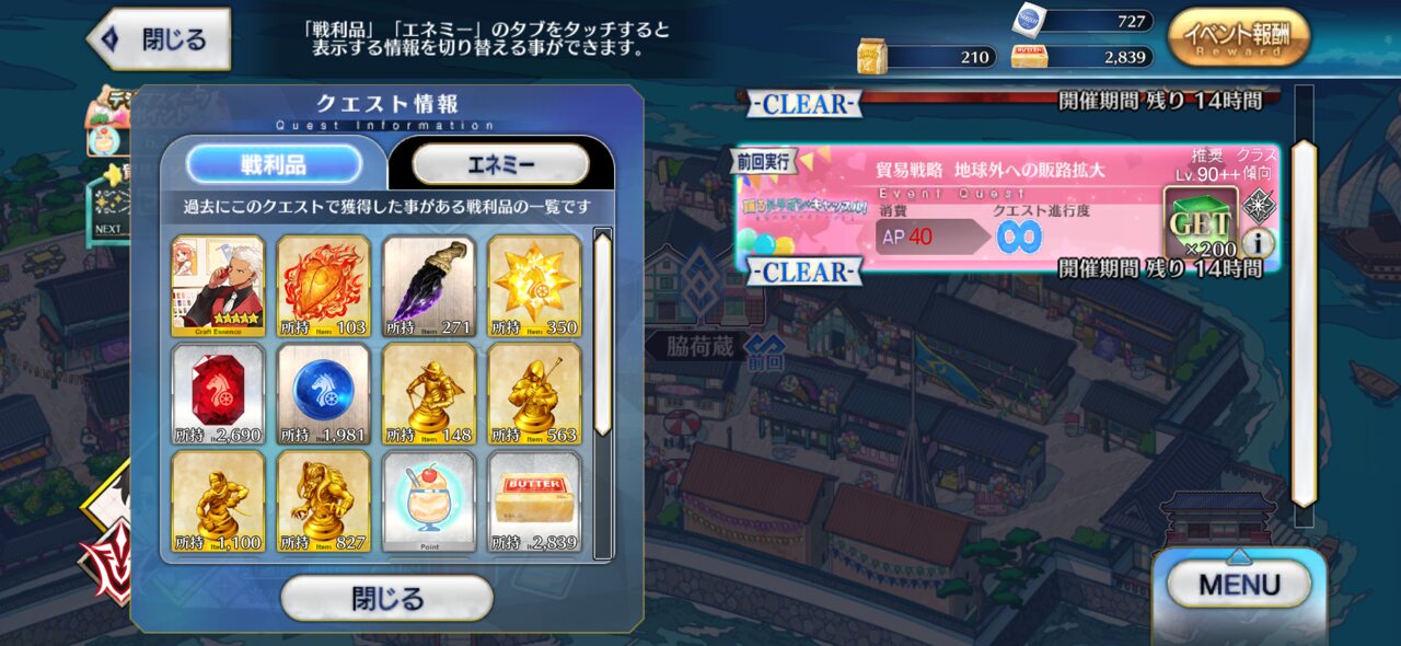 最近はこういうの出してくれてたんだけど、何故か今回の貿易のは出なかったんだよね4日くらい普通のフリクエにかまけてたら2000ほど溜め込んでた材料が尽きかけてた
