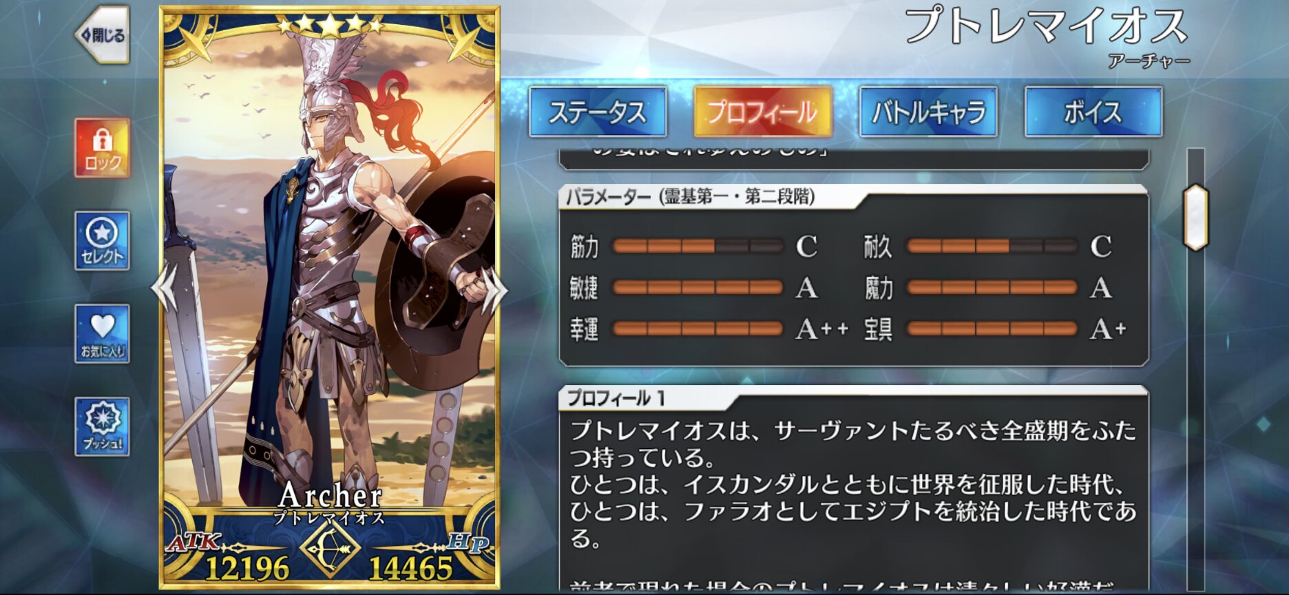 サーヴァントとしては、敏捷パラメーターに対する常時上昇効果として表現される