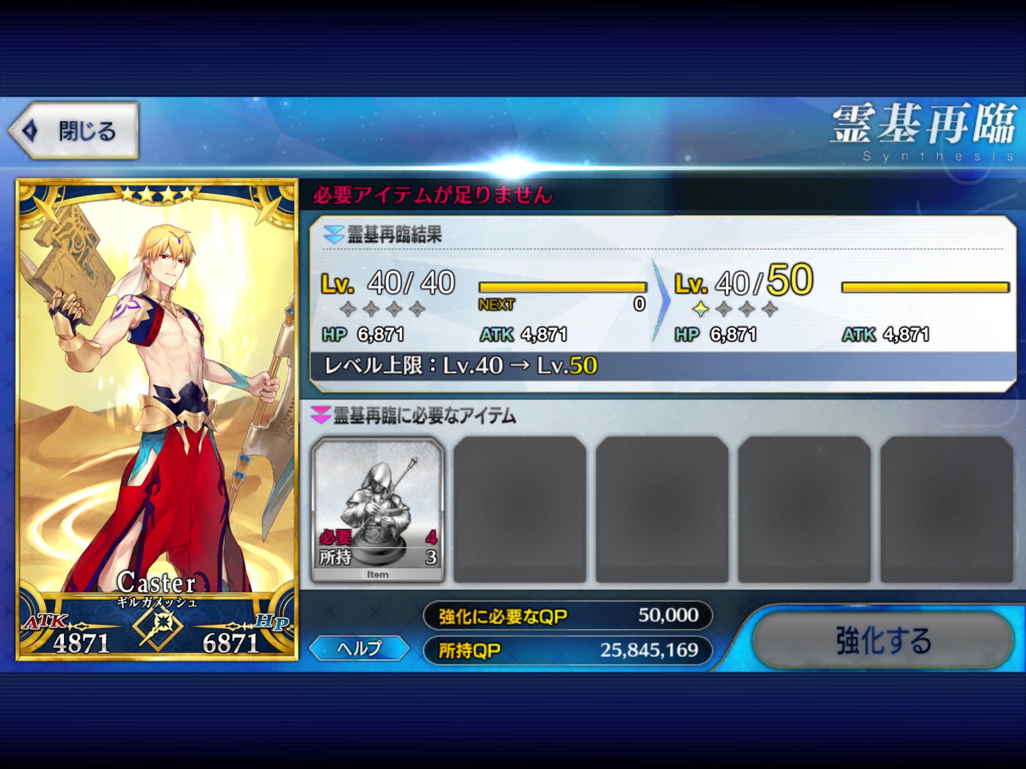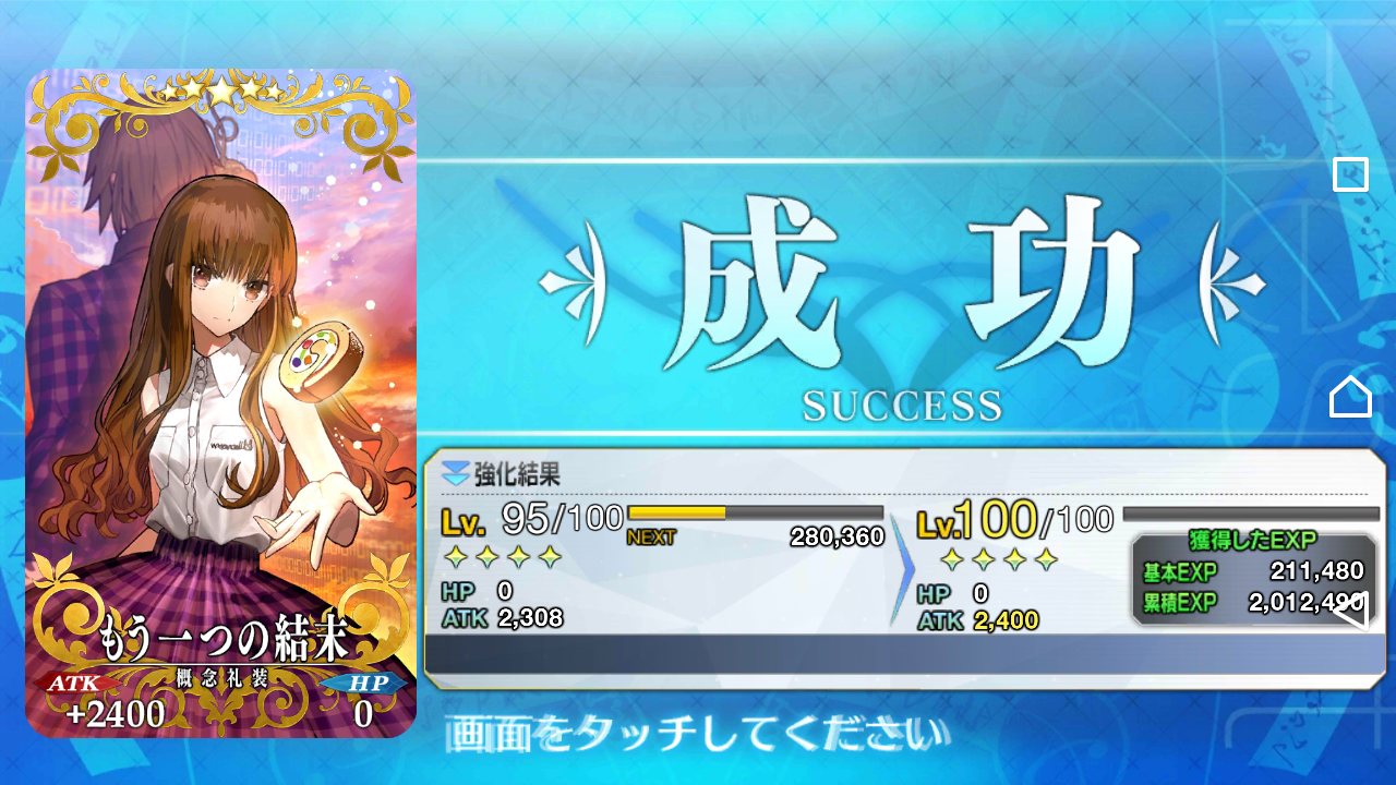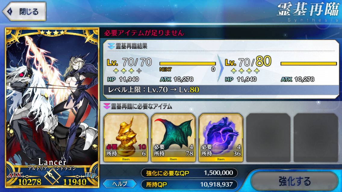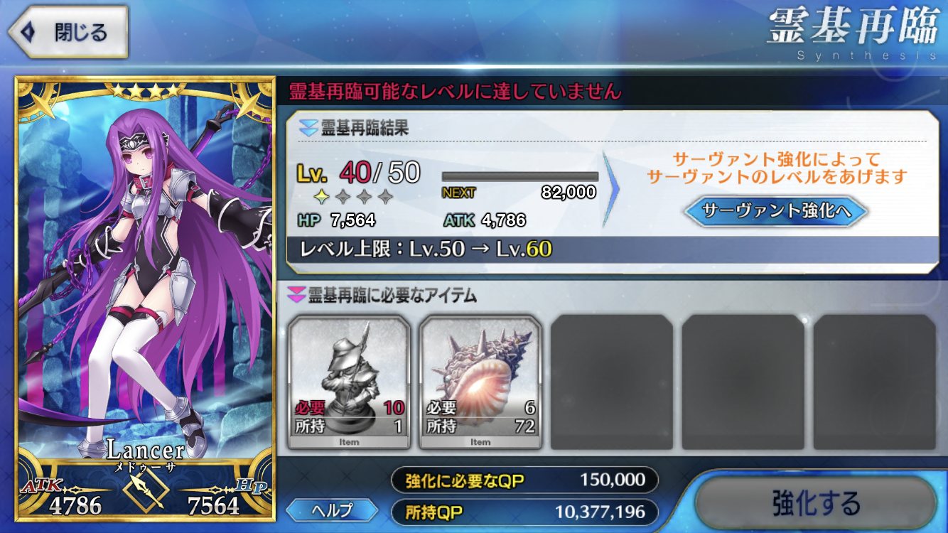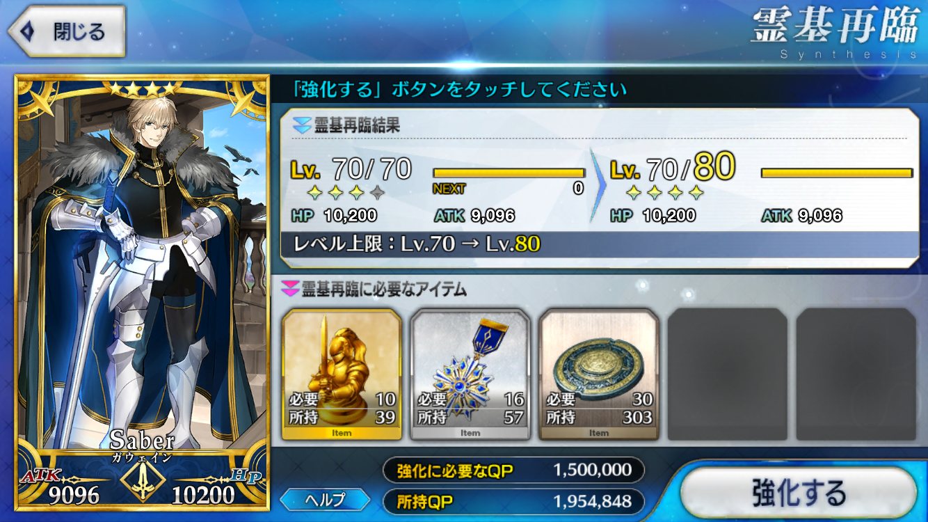 強化にかかるQP半減は良い文明だな。強化成功率UP来たら常に来てほしいが無理かなぁ