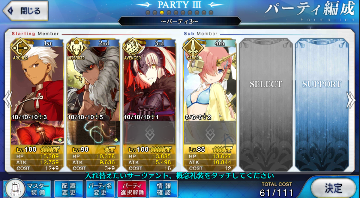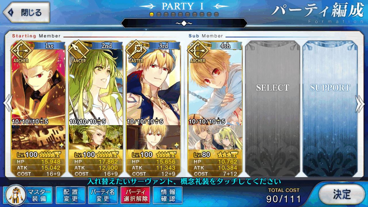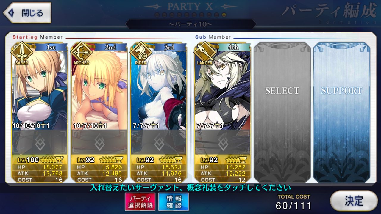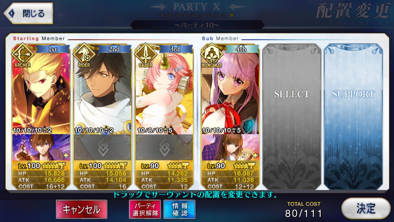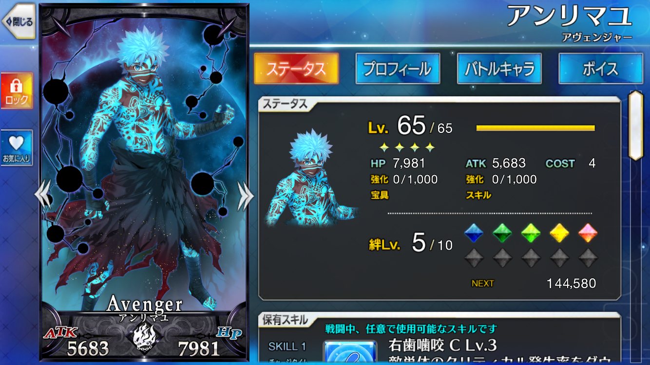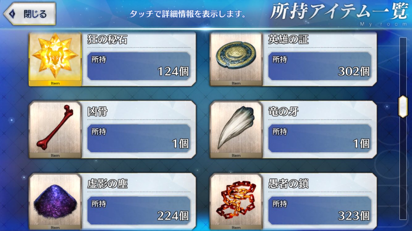 レベル100にするのは聖杯が多く必要だからね、スカサハと頼光しかレベル100はいないや。あとは星4のお気に入りを90にしてる。