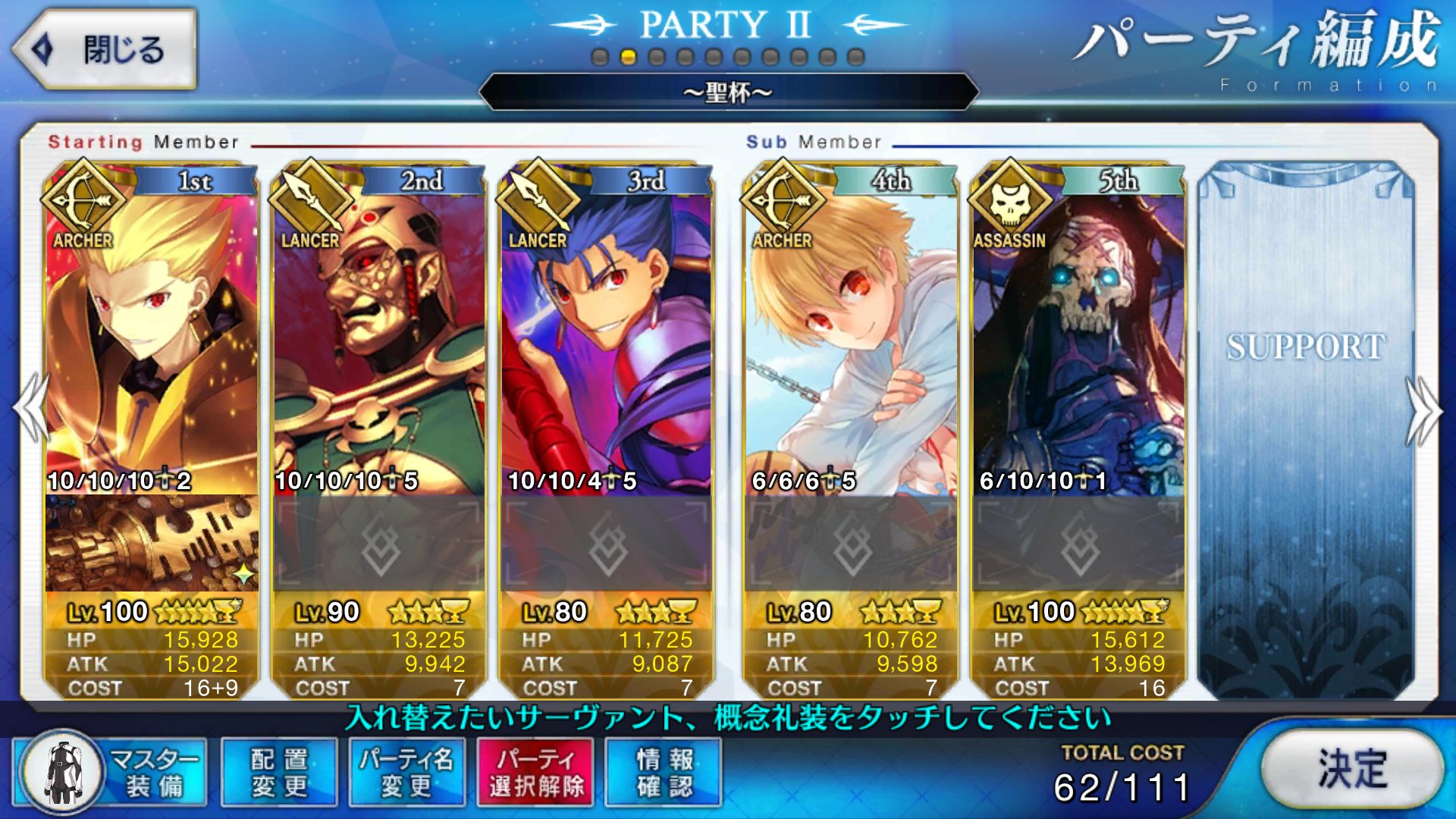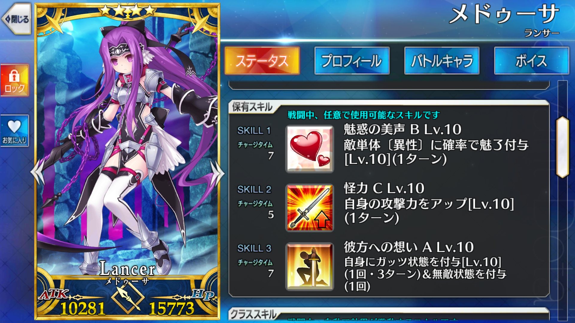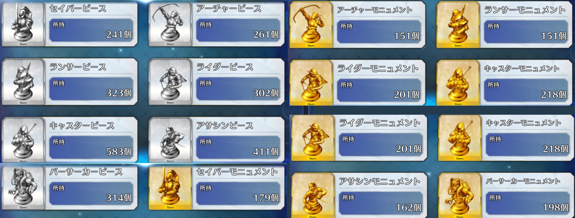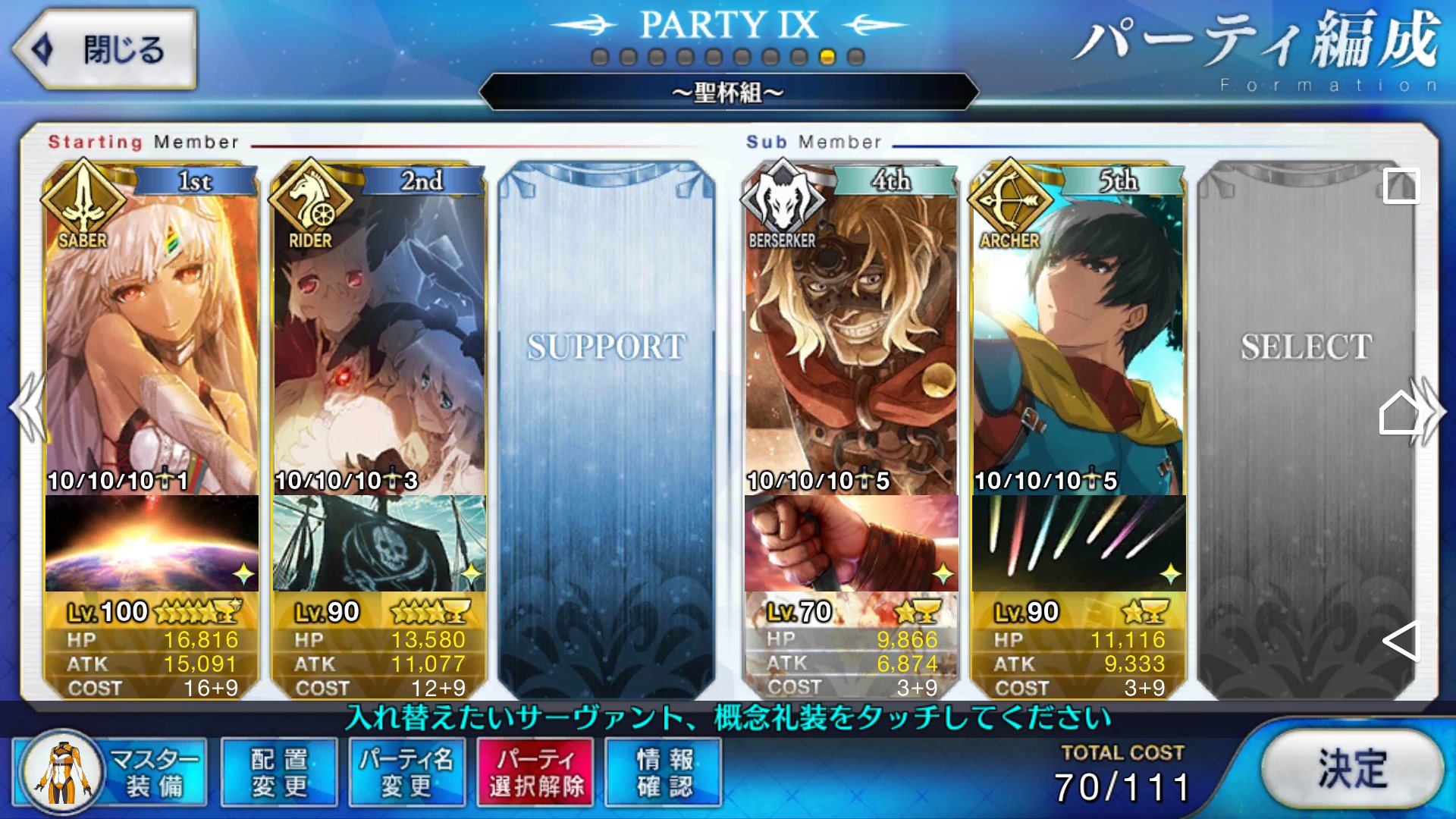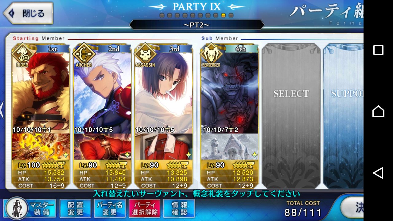 レベル100にするのは聖杯が多く必要だからね、スカサハと頼光しかレベル100はいないや。あとは星4のお気に入りを90にしてる。