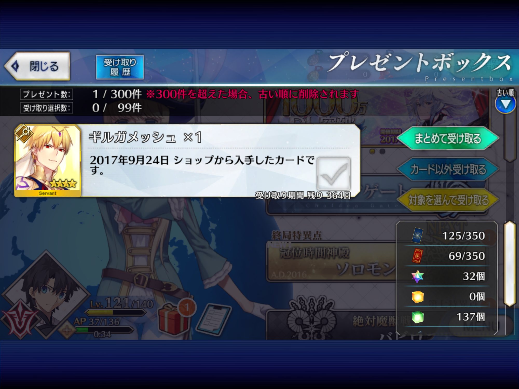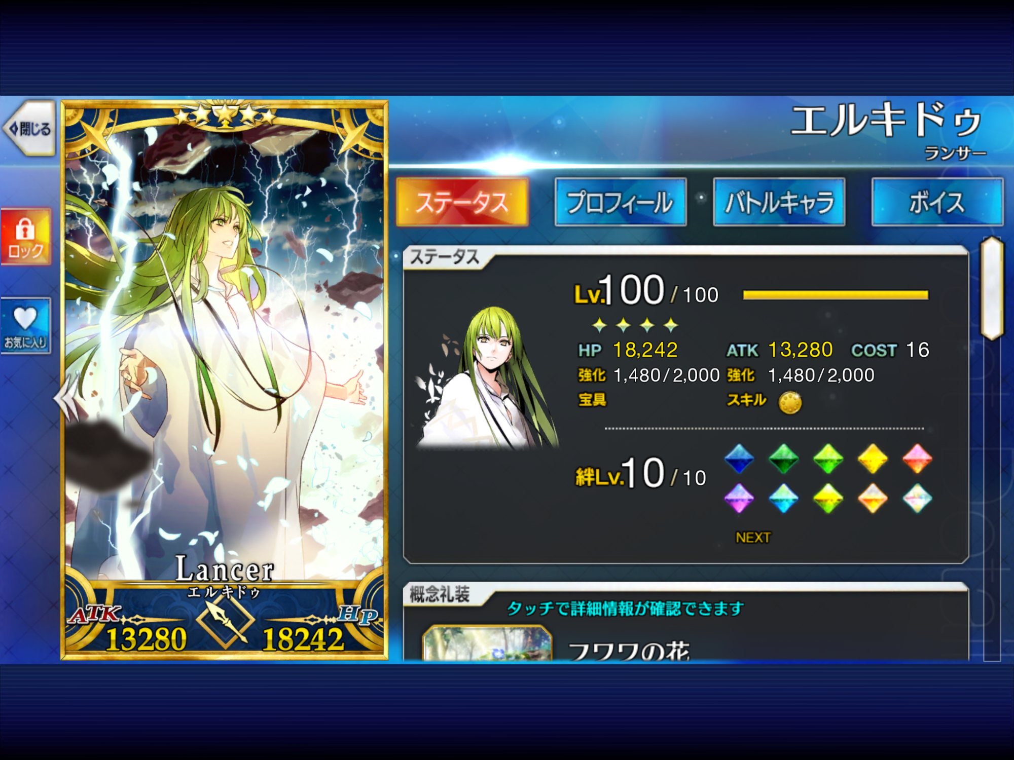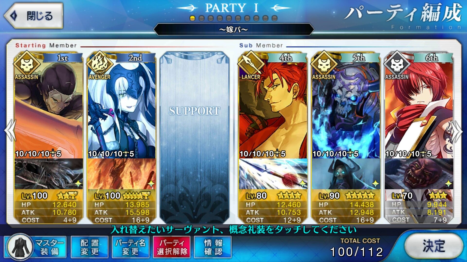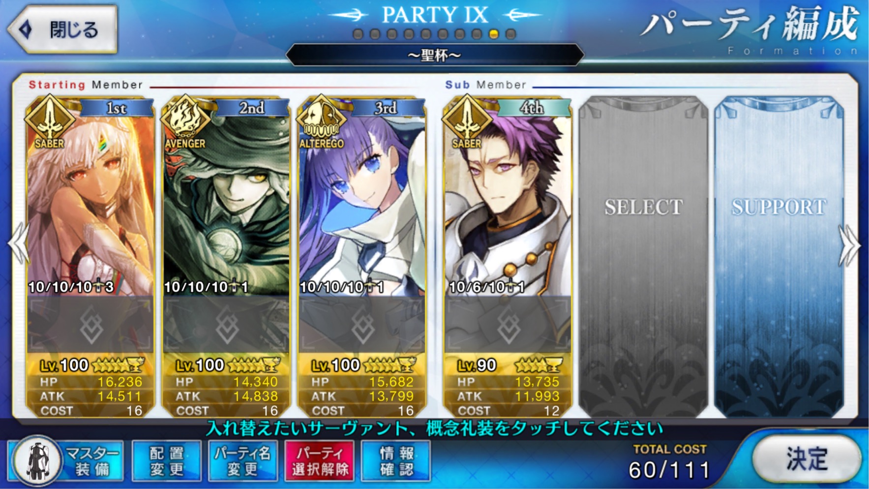 レベル100にするのは聖杯が多く必要だからね、スカサハと頼光しかレベル100はいないや。あとは星4のお気に入りを90にしてる。