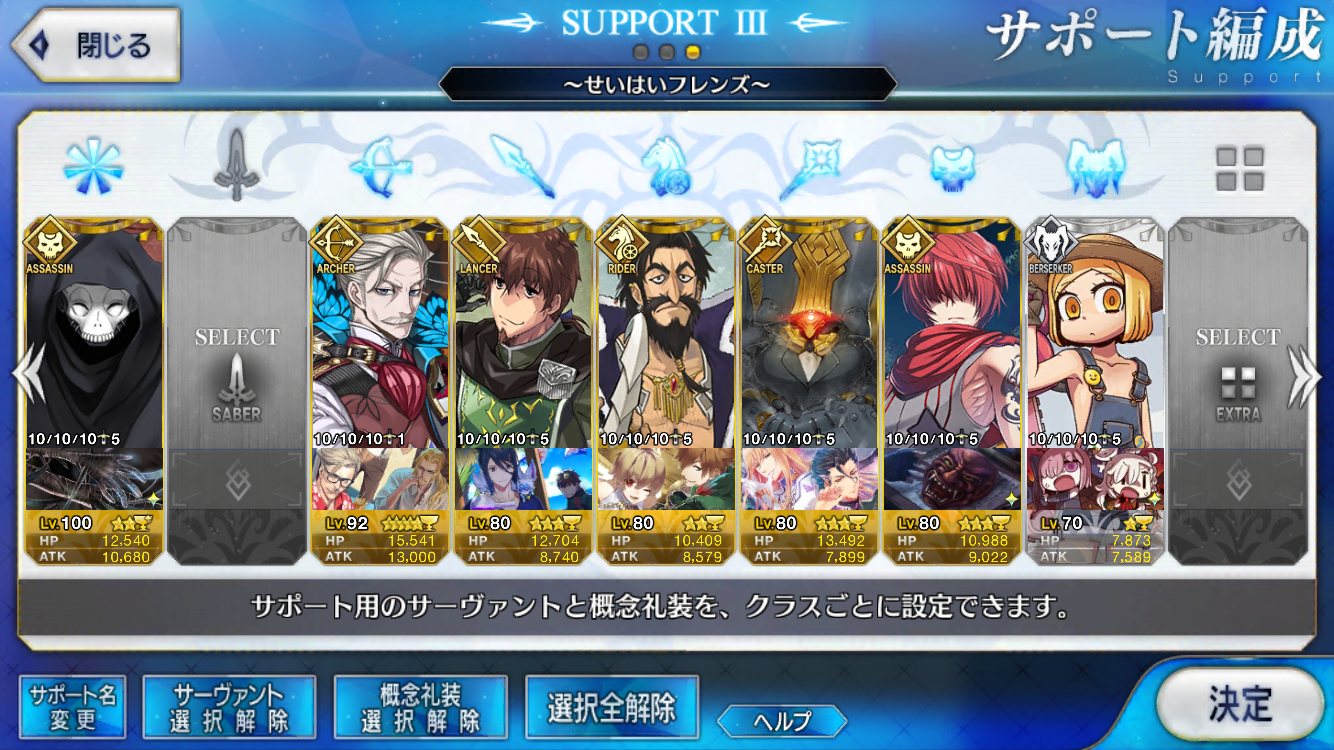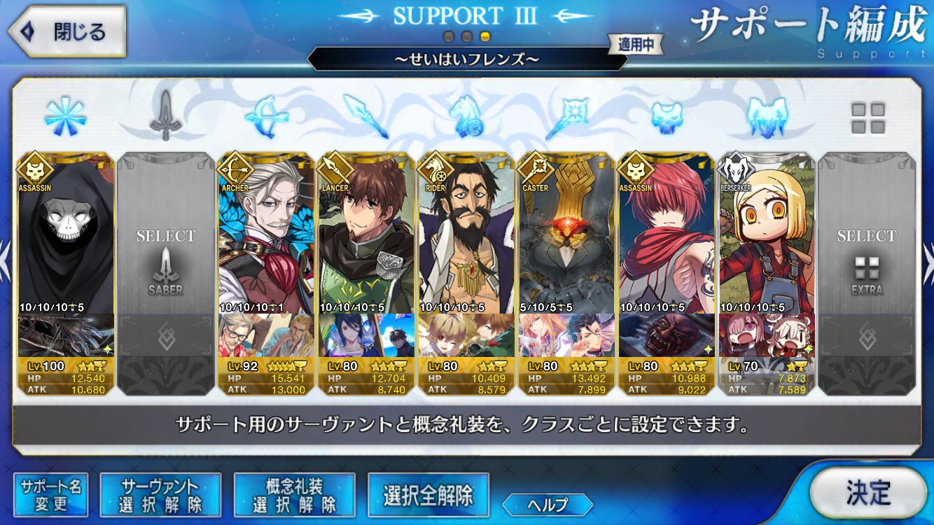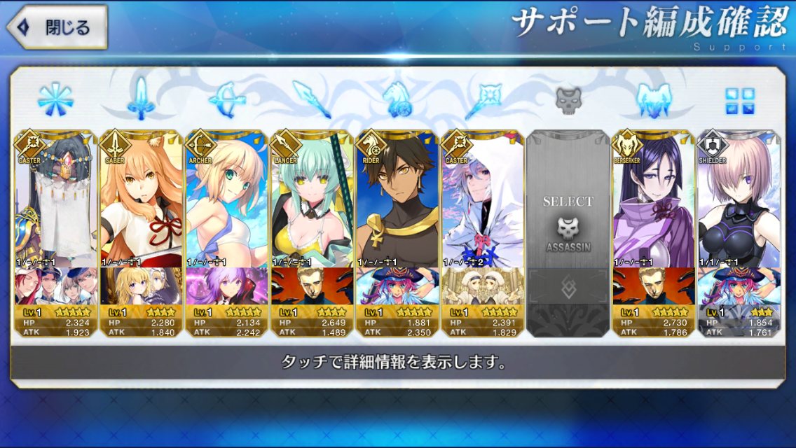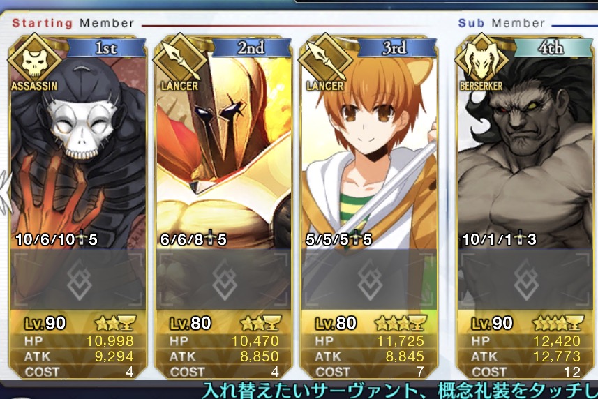 なによりアサシンオンリーだから、エレナやニトクリスみたいな周回適正の高いキャスターが採用しやすい。宝具重ねにいったんでお迎え画像とかはないけど、予定通り賢王をお迎えし宝具4に