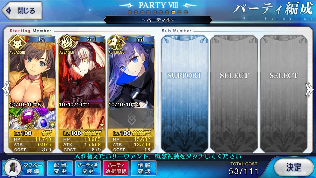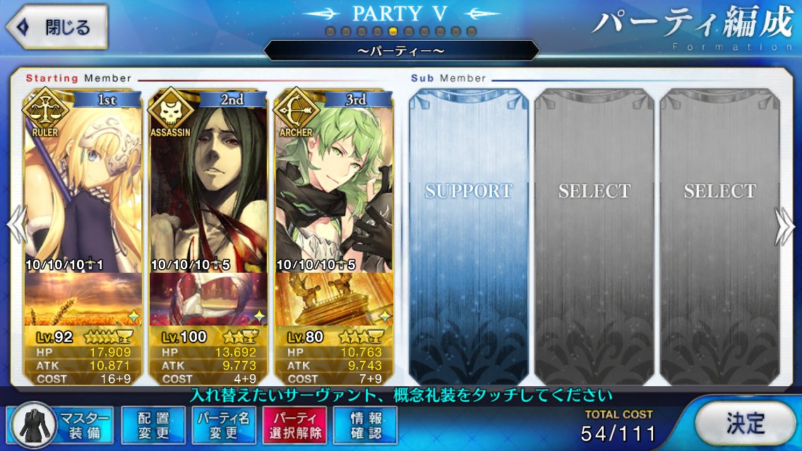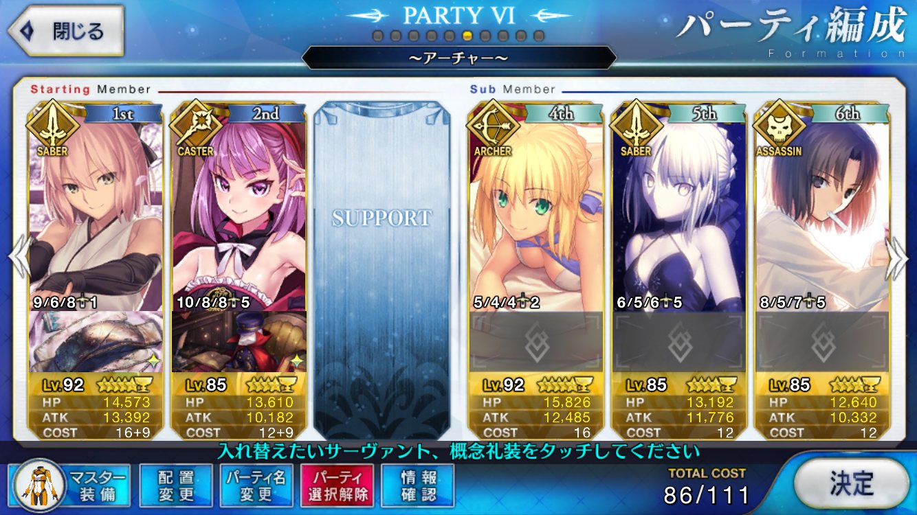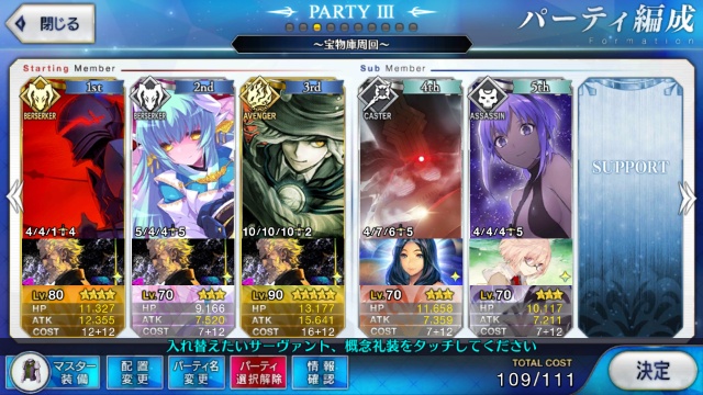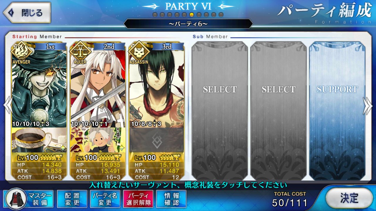 なによりアサシンオンリーだから、エレナやニトクリスみたいな周回適正の高いキャスターが採用しやすい。宝具重ねにいったんでお迎え画像とかはないけど、予定通り賢王をお迎えし宝具4に
