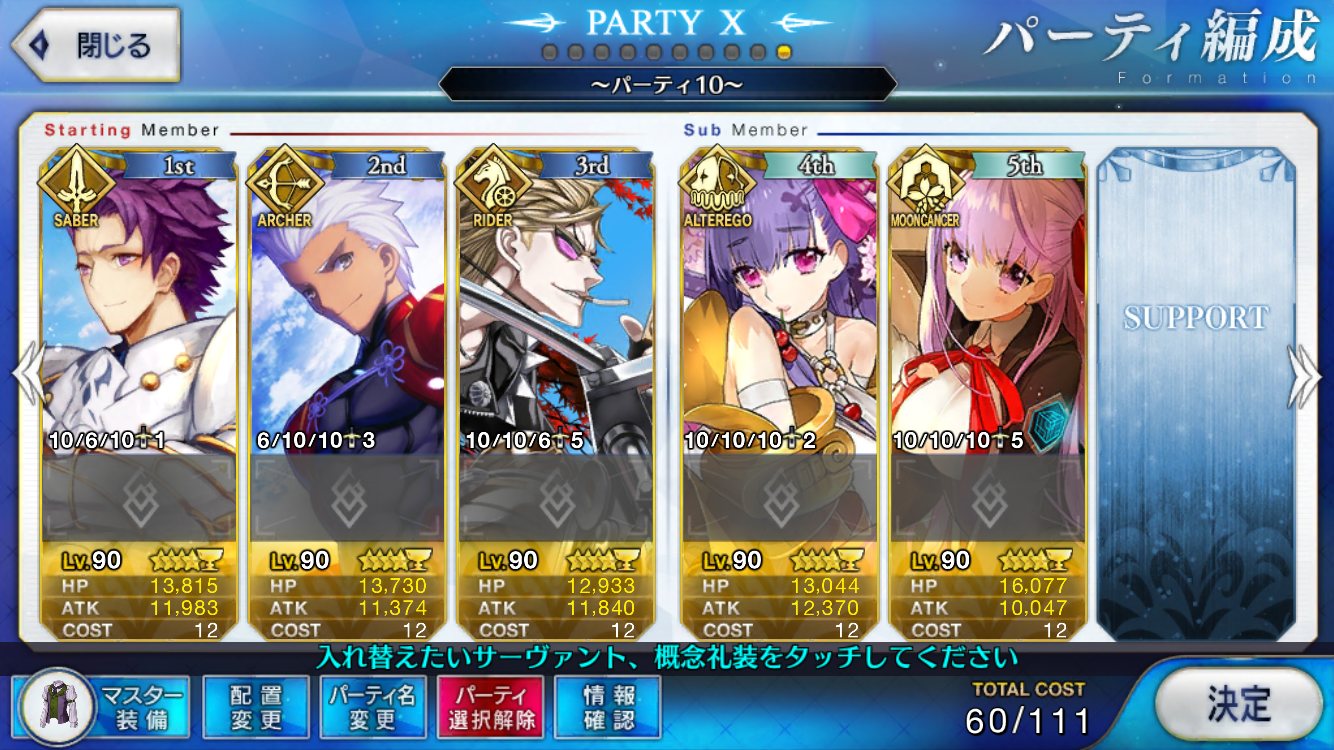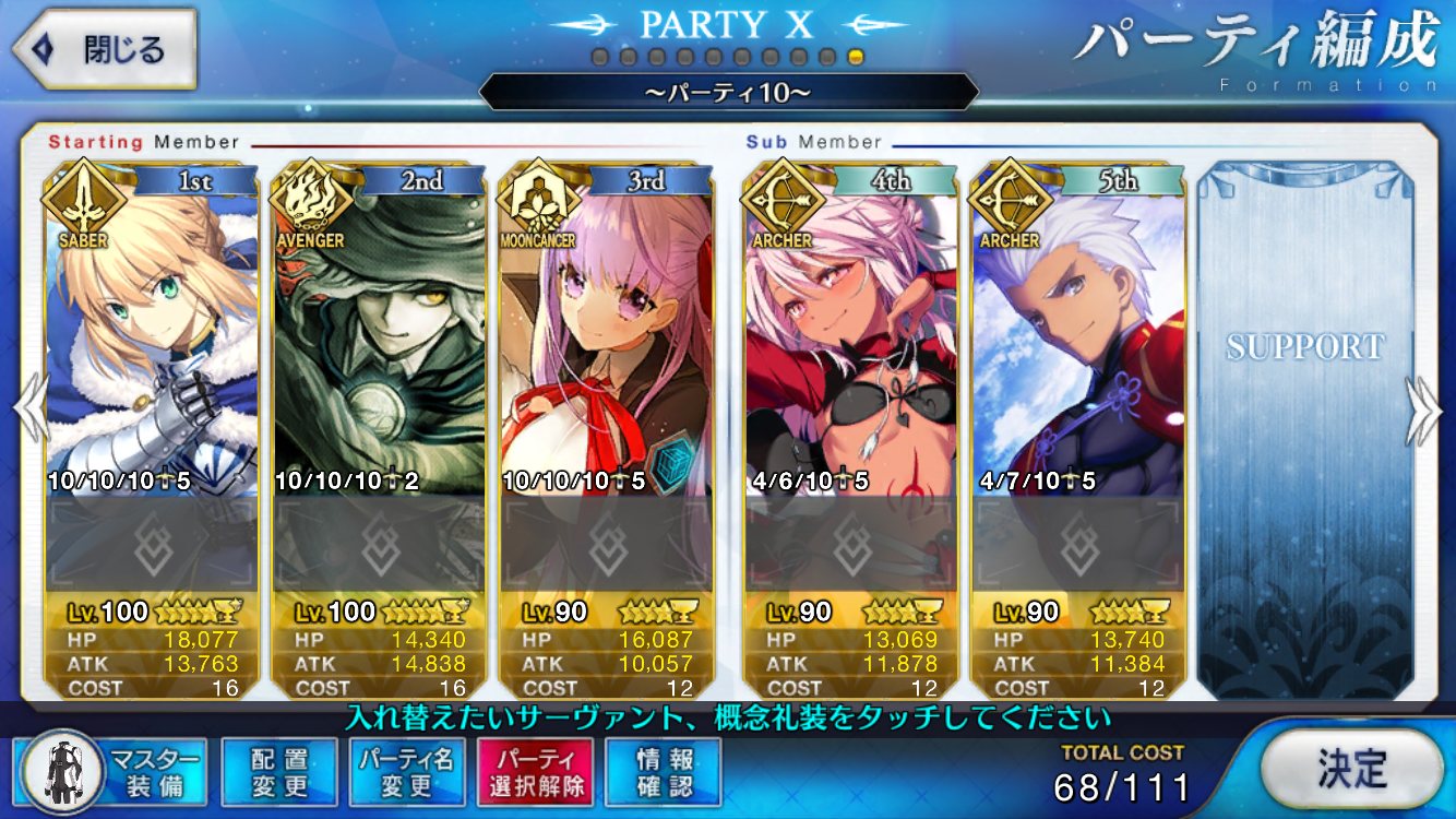 やっぱり人理の抑止力が働いてるんじゃ槍王の宝具のNPリチャージを誤解していた愚か者だが、反省の印に10連したら二人目のマーリンがきてやっふう! アーツパでの耐久戦は嫌いじゃないから本当にありがたい!