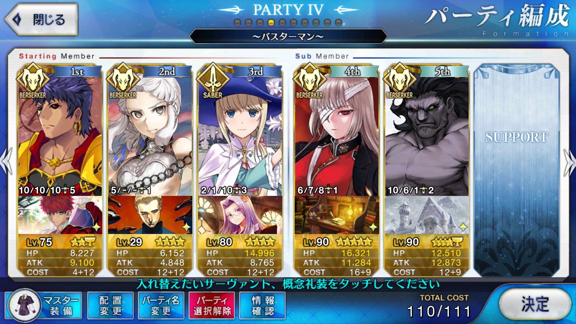 新イベ? 知そ管ランフロットはアーツバフ宝具だけだし、英雄作成はバスターバフ50%に対してクリティカルバフ100%だし、ランスのバスターは4ヒットだしでアーツチェイン使うわけじゃないならバスター使うのもアリだと思うよ