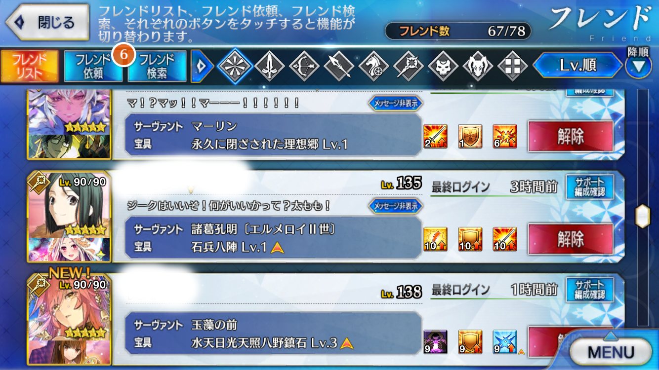 ある日突然オジマンがメイヴになったりマーリンが玉藻になったりジャンヌオルタがアストルフォちゃんになったりしてたらフレンド切られるだろうか自分だったら愛が見えるような人は絶対切らないけど効率重視の人もいるのは確かだからなぁ
