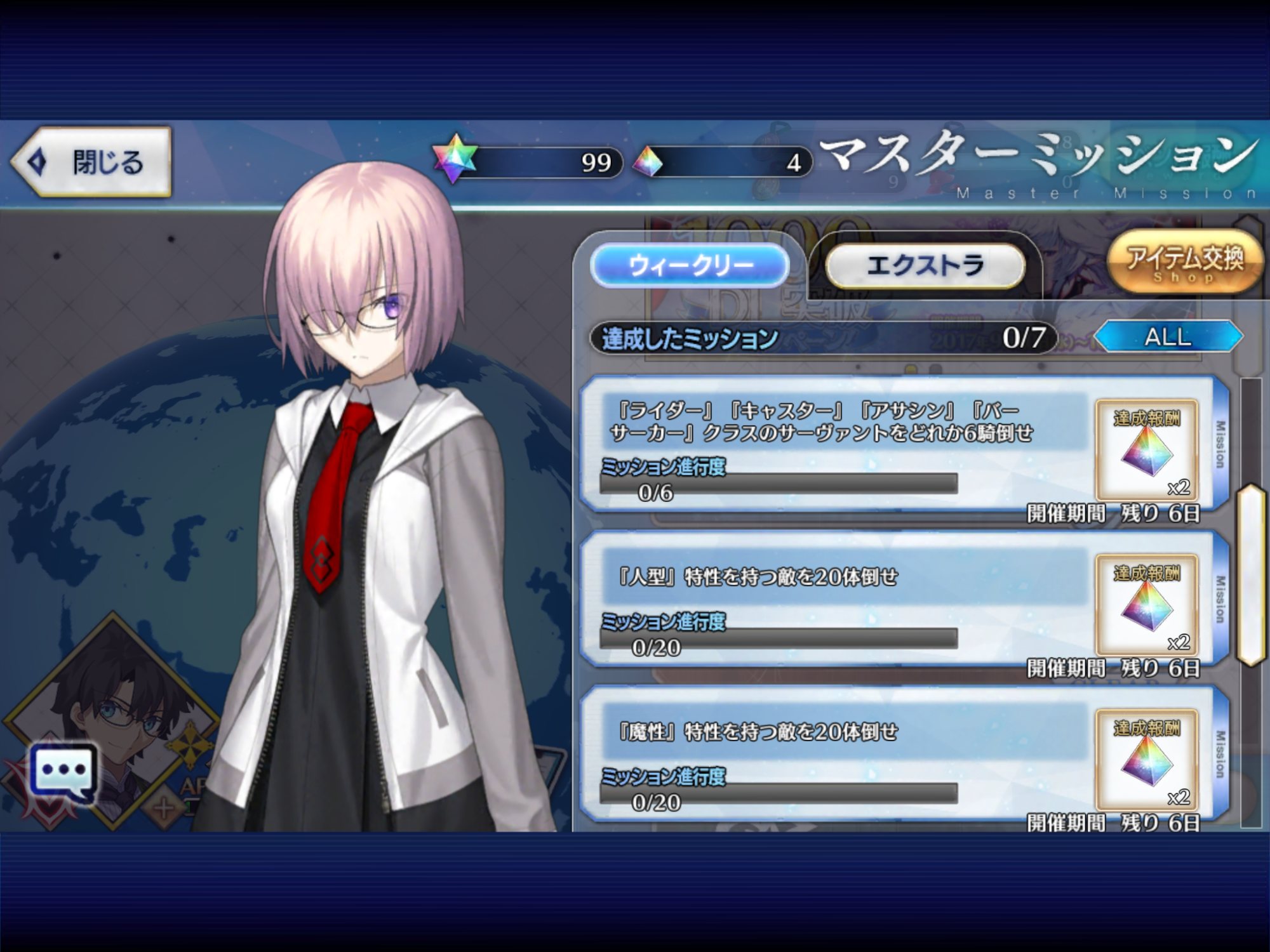 蜘蛛糸の果てをスキルマにして髄液が0になって以来、なかなか手を着けきらないわマスターミッションに魔性特性の敵を20倒せって、やっぱ何かしら来る気配かね