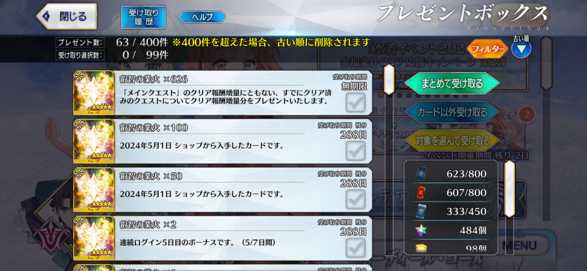 マジで依り代として優秀すぎる7周年で大成功キャンペーンが来ればチョコとお返し礼装をボックスから出せる・・・