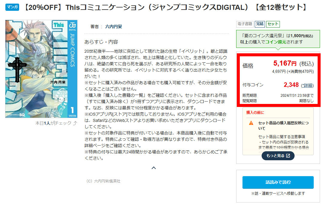 今なら全巻セットが20%オフ&50%コイン還元で、実質の価格が3000円切ってるというすごいお得なタイミング