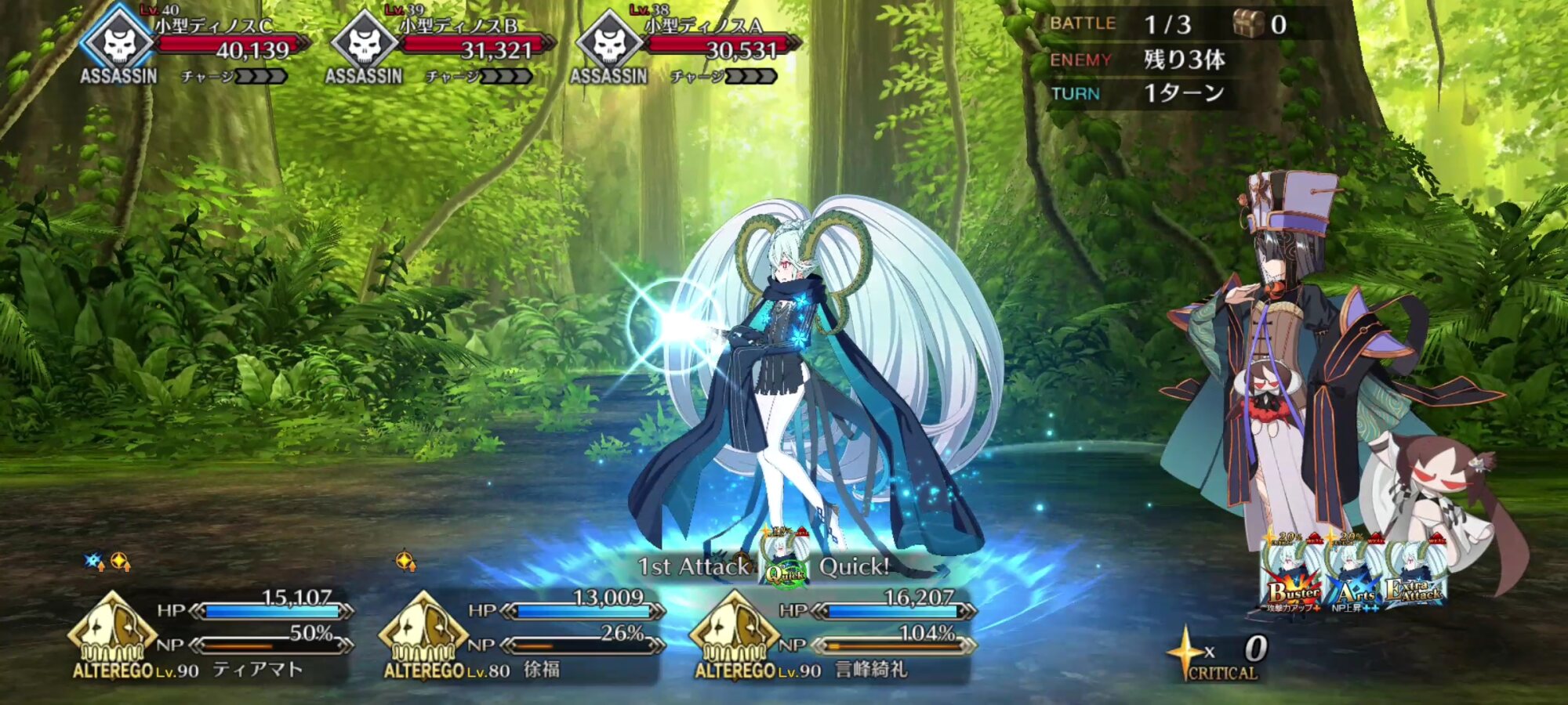 水着うちの推しもまた、最近の再臨による属性変更ほどではないですが、『人の力を持つ敵』に対するクリティカル威力、「混沌」と「善」特性味方のNP獲得量が1・2臨と妖精騎士である3臨で比重が変わるらしいですわね>>917
