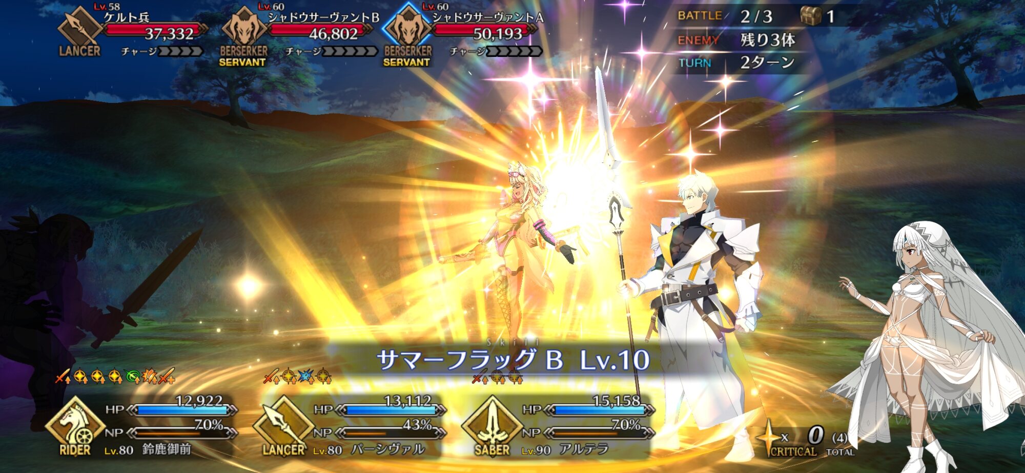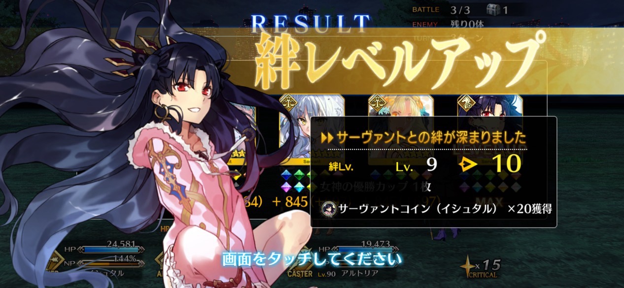 キャストリア+術ギル+Artsアタッカーの組み合わせだと3-2-3の変則も場所によっては回れたりするミコケルは……また俺の手をすり抜けて行ってしまった……俺はまた彼女をあの森の家から連れ出せなかったのか……