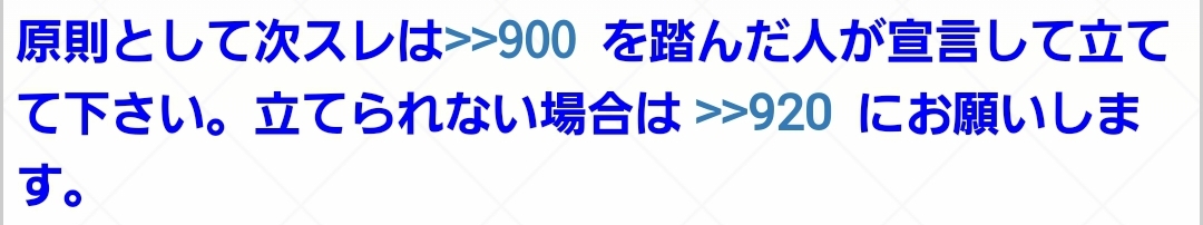 原則として次スレは>>900を踏んだ人が宣言して立てて下さい。立てられない場合は >>920にお願いします。