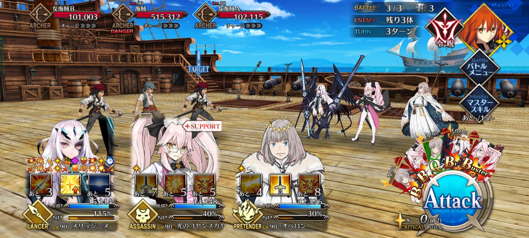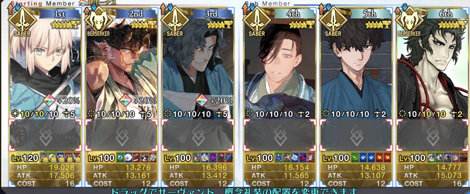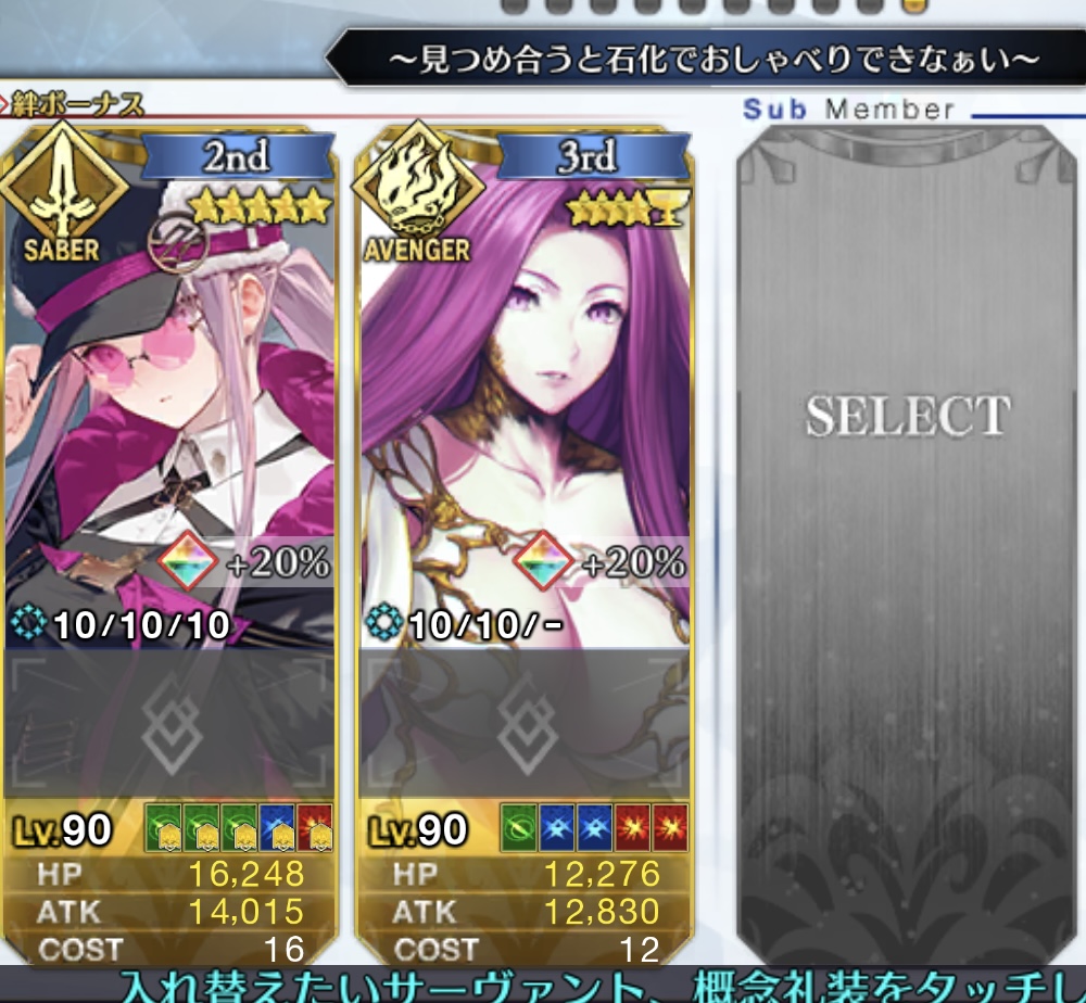 こんなもんサポートにメリュ子入れて開幕2ターンはダブルメリュ子の宝具で消し飛ばしてるけど三ターン目どうしようかってもんで次やるときはククルカン入れてみようと思います>>887