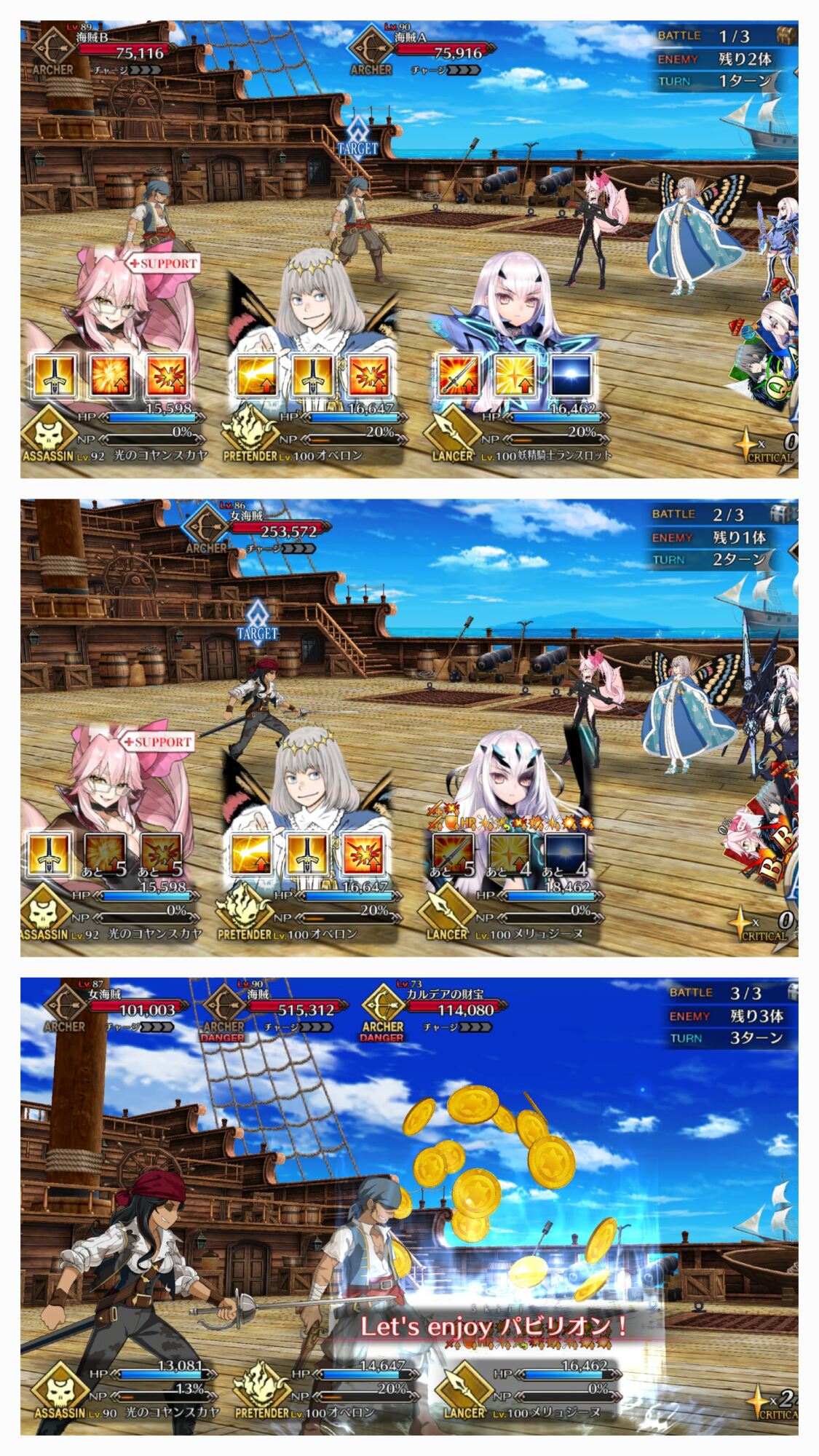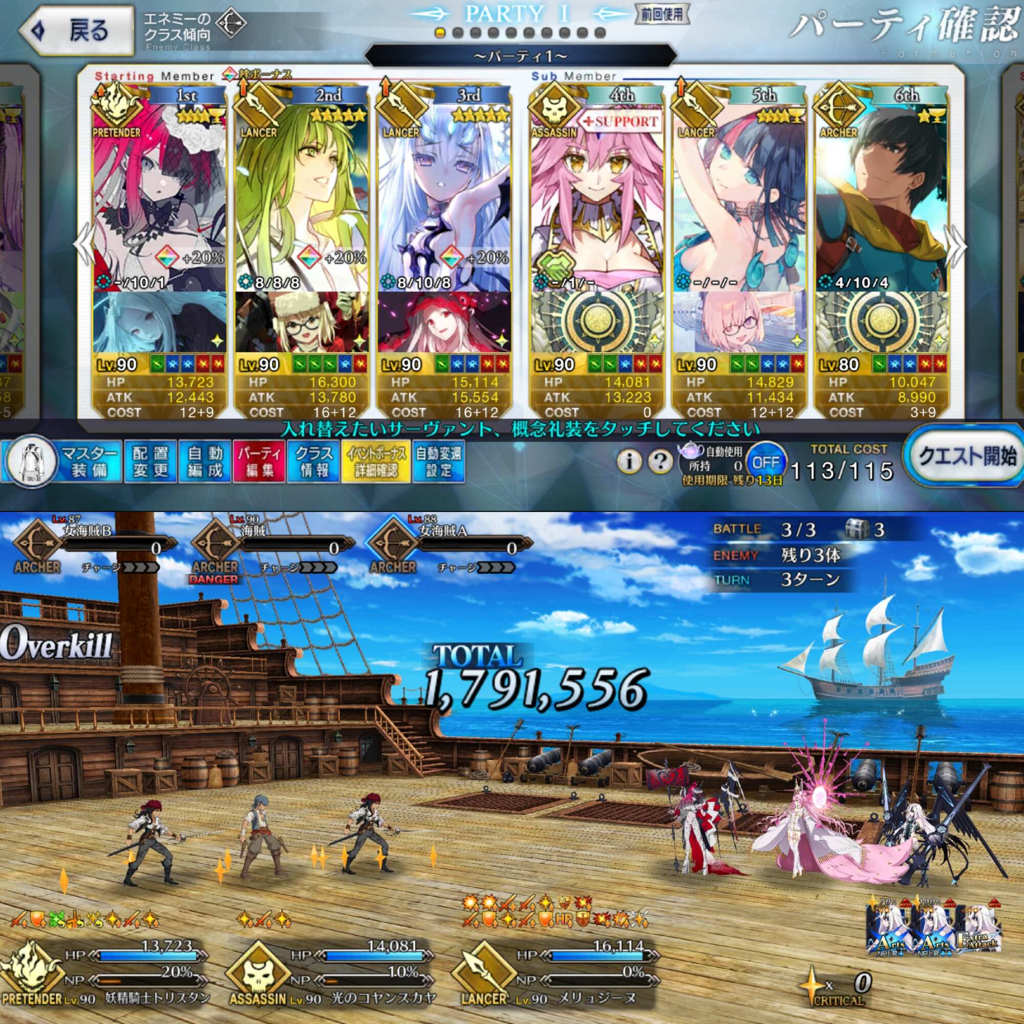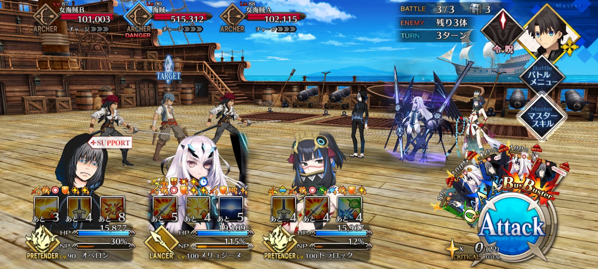 こんなもんサポートにメリュ子入れて開幕2ターンはダブルメリュ子の宝具で消し飛ばしてるけど三ターン目どうしようかってもんで次やるときはククルカン入れてみようと思います>>887