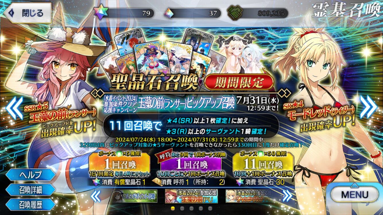 1年持ちそう。ほああああ恒常サーヴァントにもPUくださァァァァい!