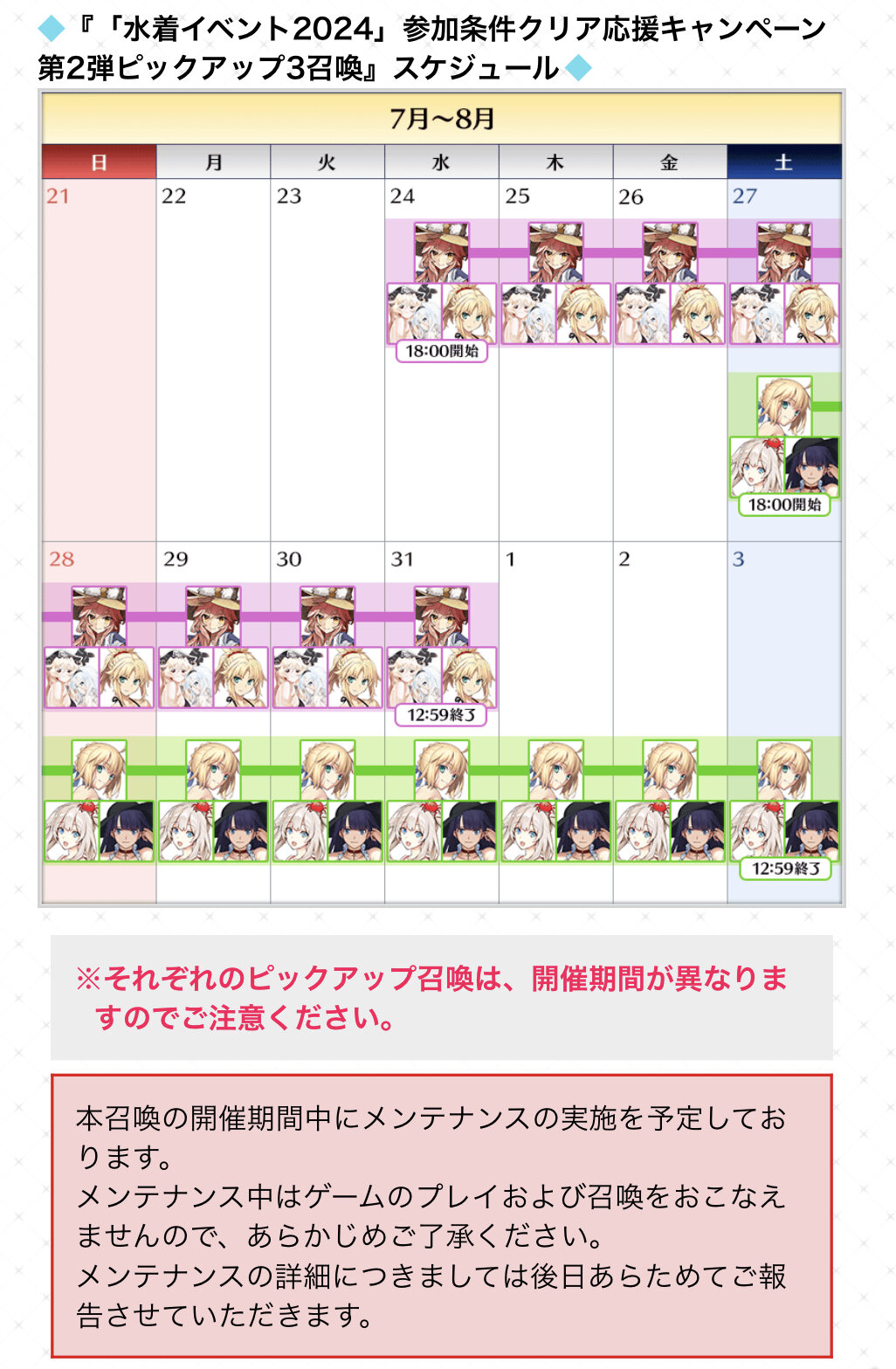 R18関連話題、よくてよ無しのガチャ結果、実装から二週間以内のシナリオ及び開催期間中のイベント内容、進行度依存の報酬、最終再臨や霊衣解放の画像や話題は専用スレにてお願いします。