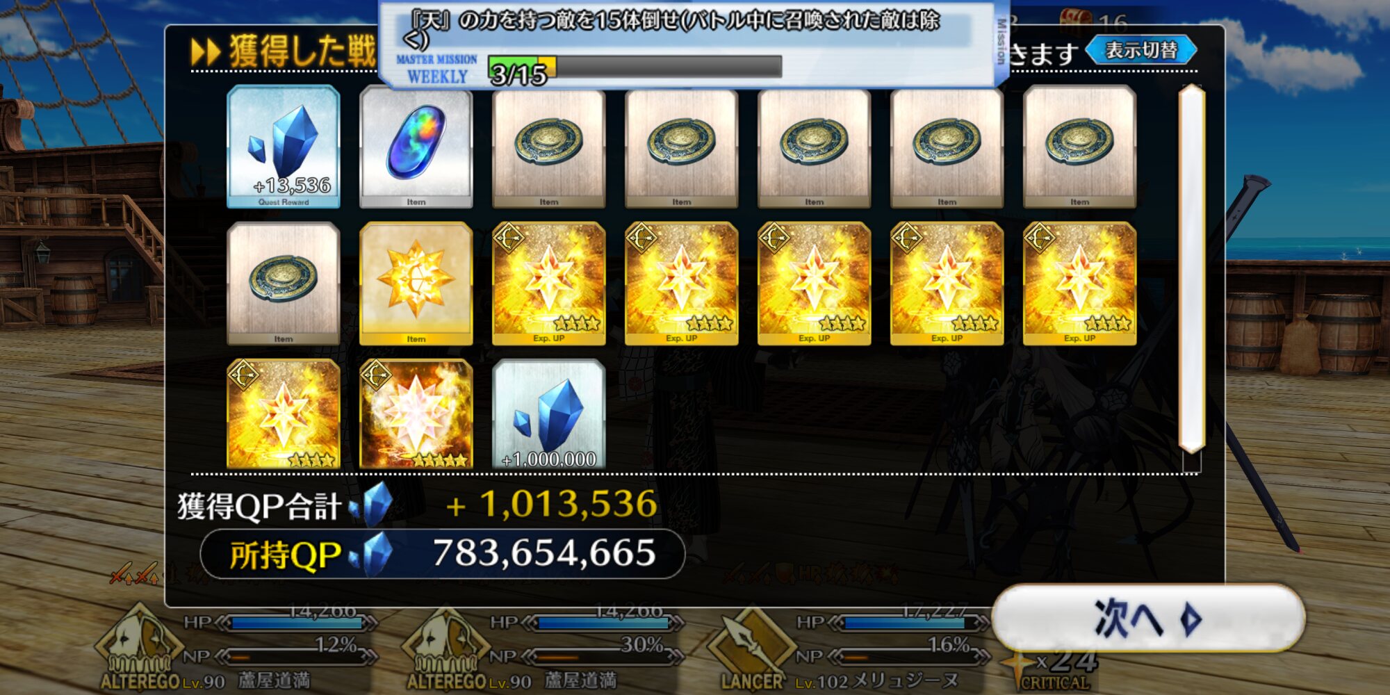 スクショ取り忘れたが凸英雄道満で2000稼いできてた
