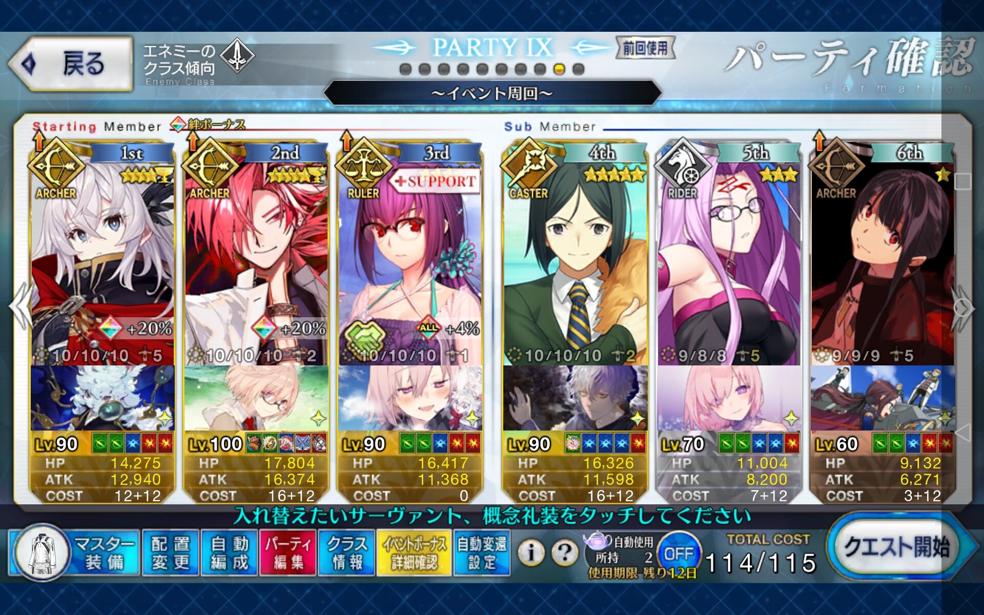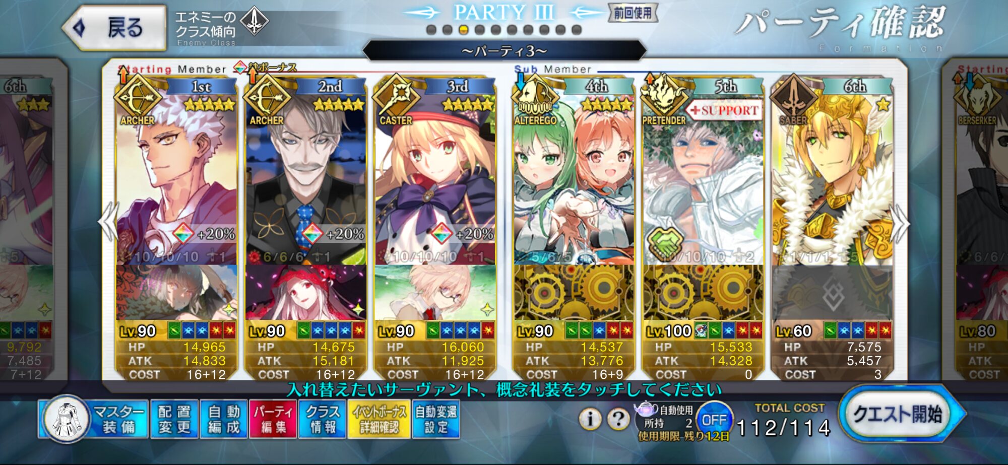 多分まほよトリオの中で一番稼働してる鯖である。すまんな・・・変則周回が多いのがいけないのだ!>>873