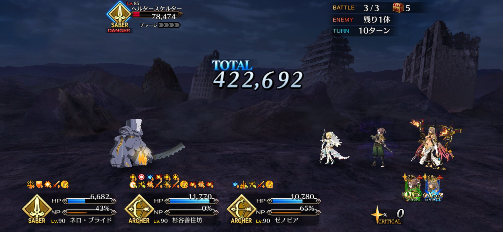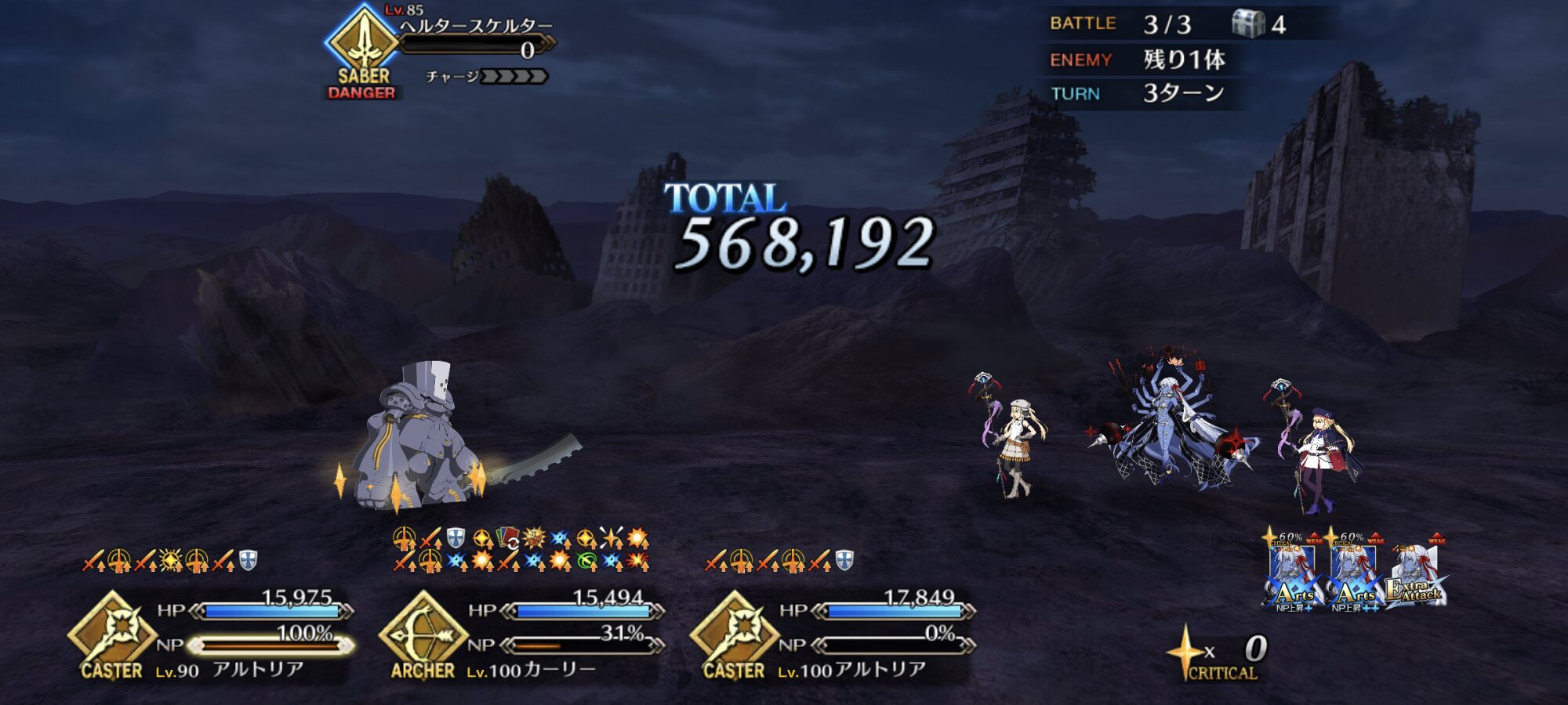 実際現環境ではスター飽和化も意図的に一部の鯖による星出しスキルで調整できるので変則周回では単体宝具突破だけでなくクリ殴りで突破する形も多く見られますねえ。カードで左右されるのでやや安定に欠けますが。