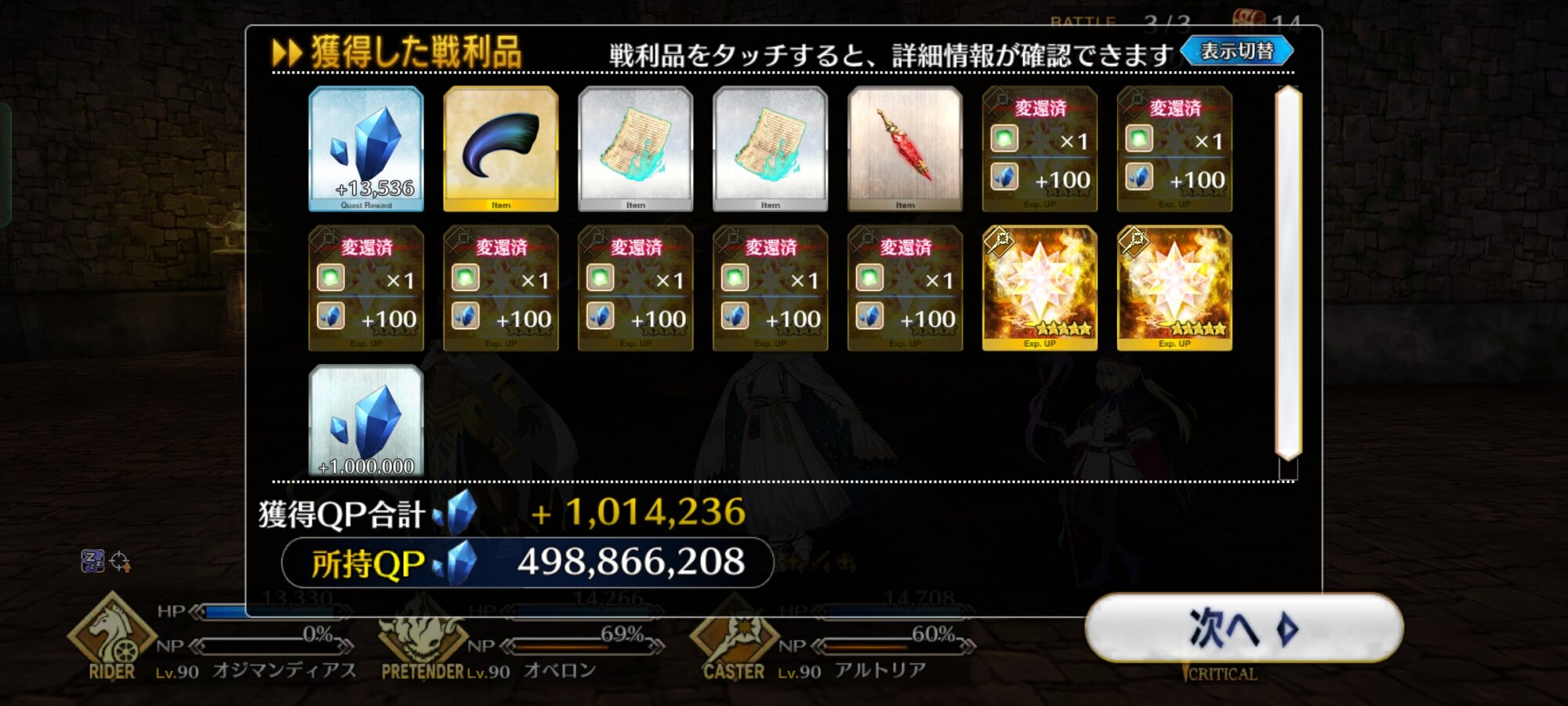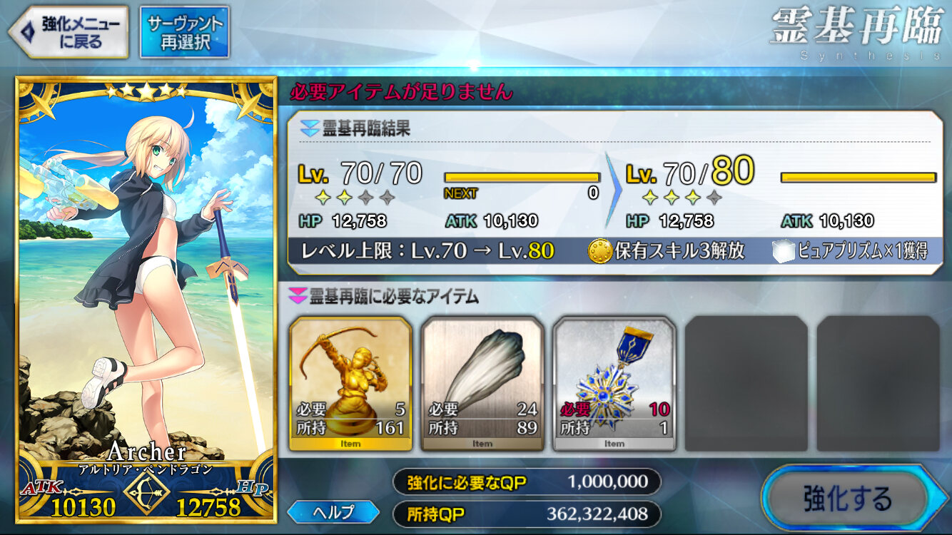 惜しいな。土用に食っていれば君は元気ガンギマリだっただろうに。キャストリアの周回上の数少ない欠点は絆に上限が存在する事だからねぇ