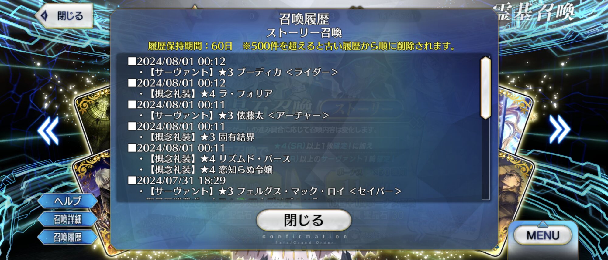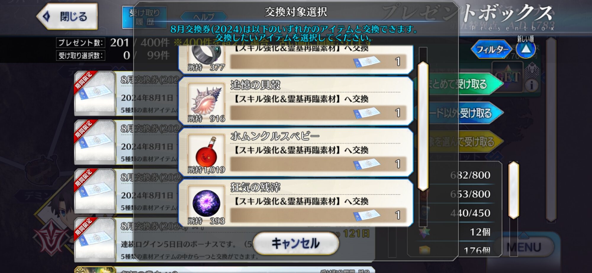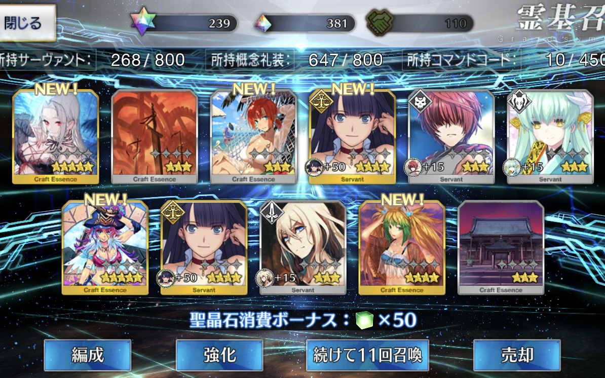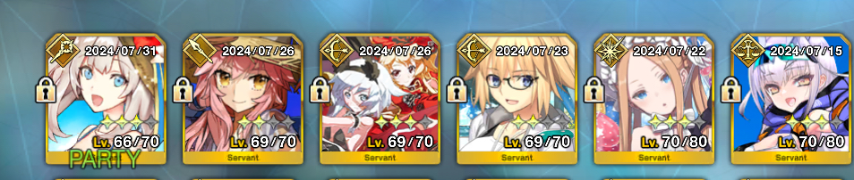 まだ誰も100に届いてないんだ…今年の周年と水着が判明するまでは迂闊にリソース消費したくないので、私の所持枠は今日もデイリーガチャ1回で溢れます。