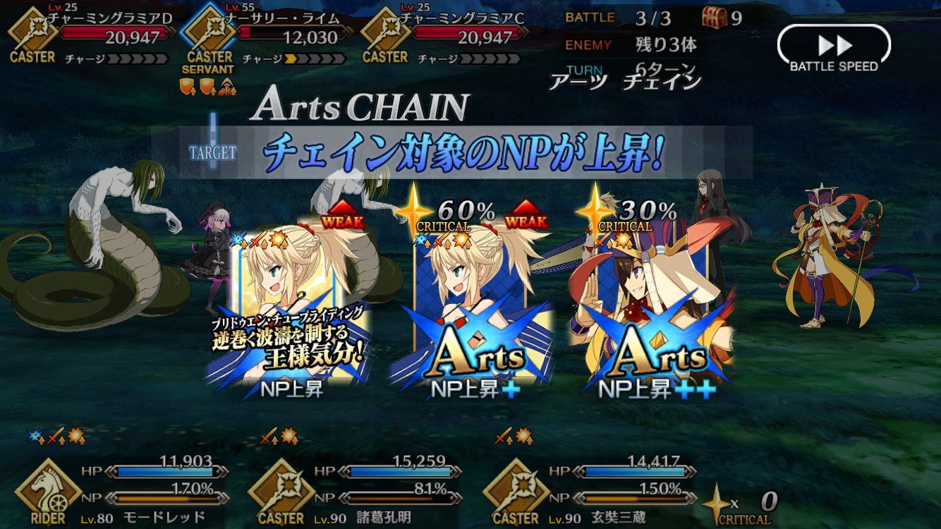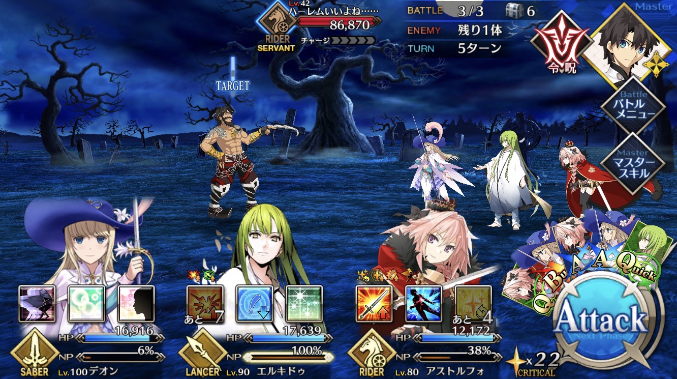 なお運ゲーで普通は6Tの模様、泥礼装も3枚しか積んでないしさらっとアストルフォが女子扱いだが