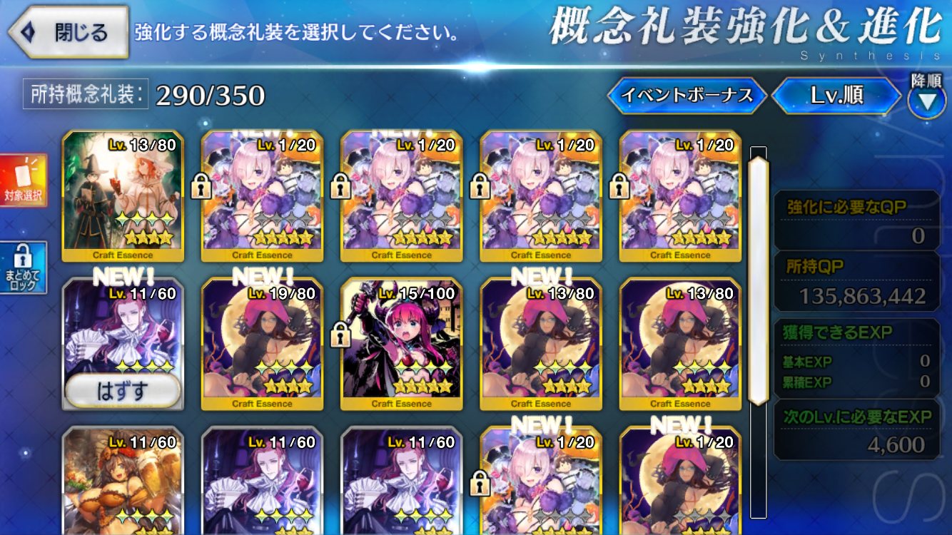 てことは凸ってる昨年組は礼装交換分とブレエリちゃん再臨素材分、交換数浮くのか去年は真面目に遊べなかったので今度こそアイテムも礼装も全部とる
