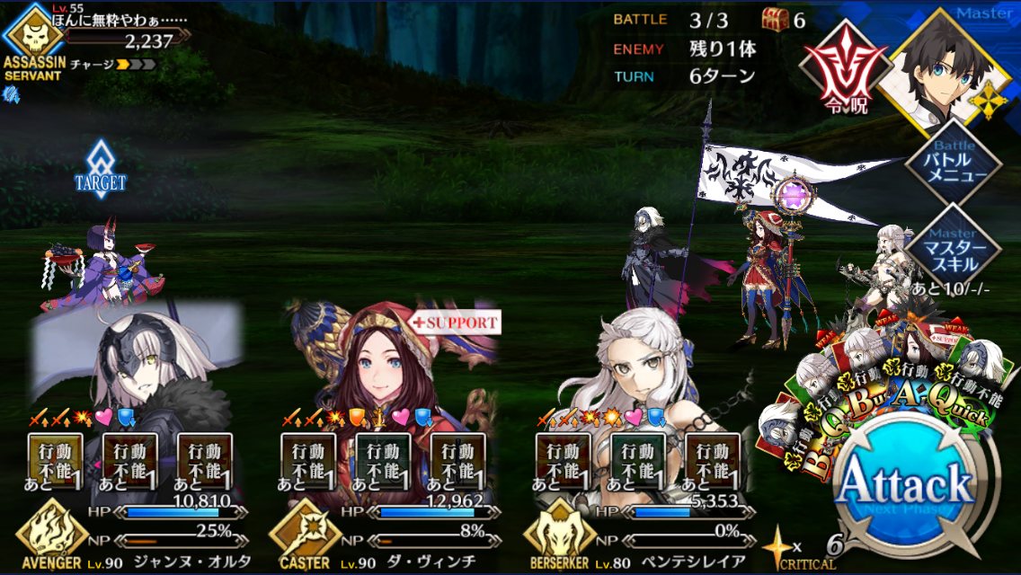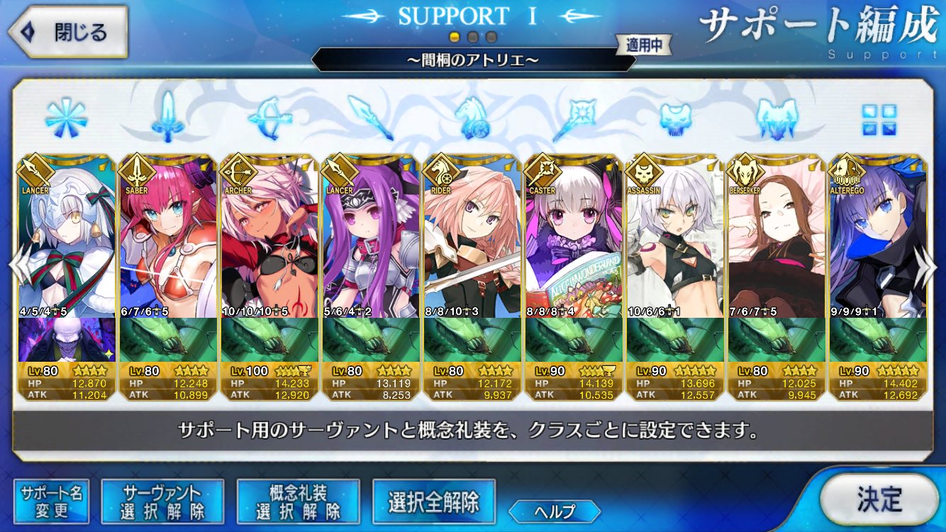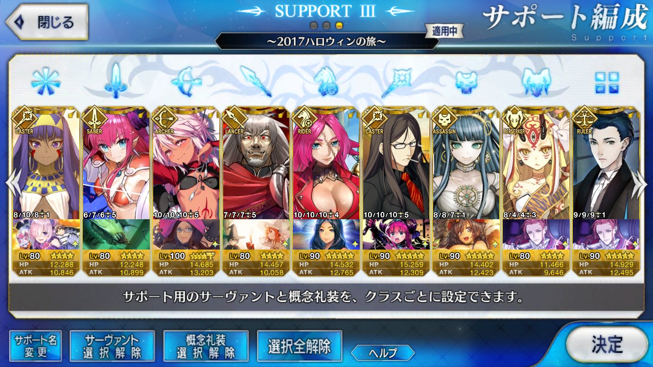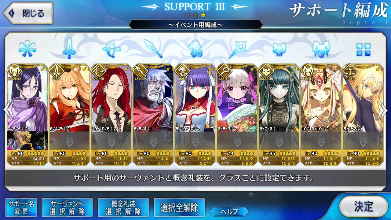 今回のサポート欄、イベ対象鯖(最終再臨済みだがレベマではない、スキルも育ててはない)か普段の育ちきってるサポートにイベ礼装かどっちがありがたいかなぁ……