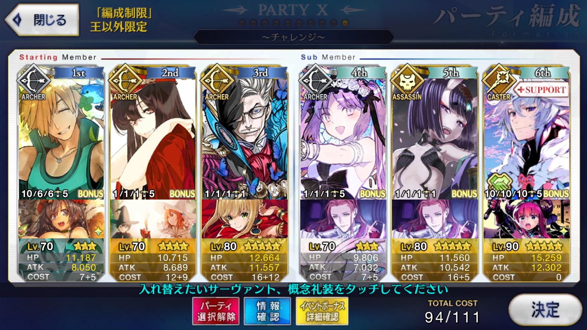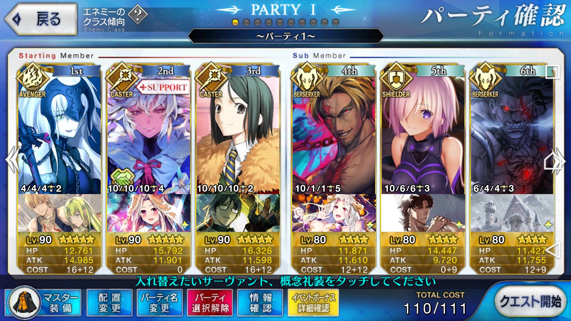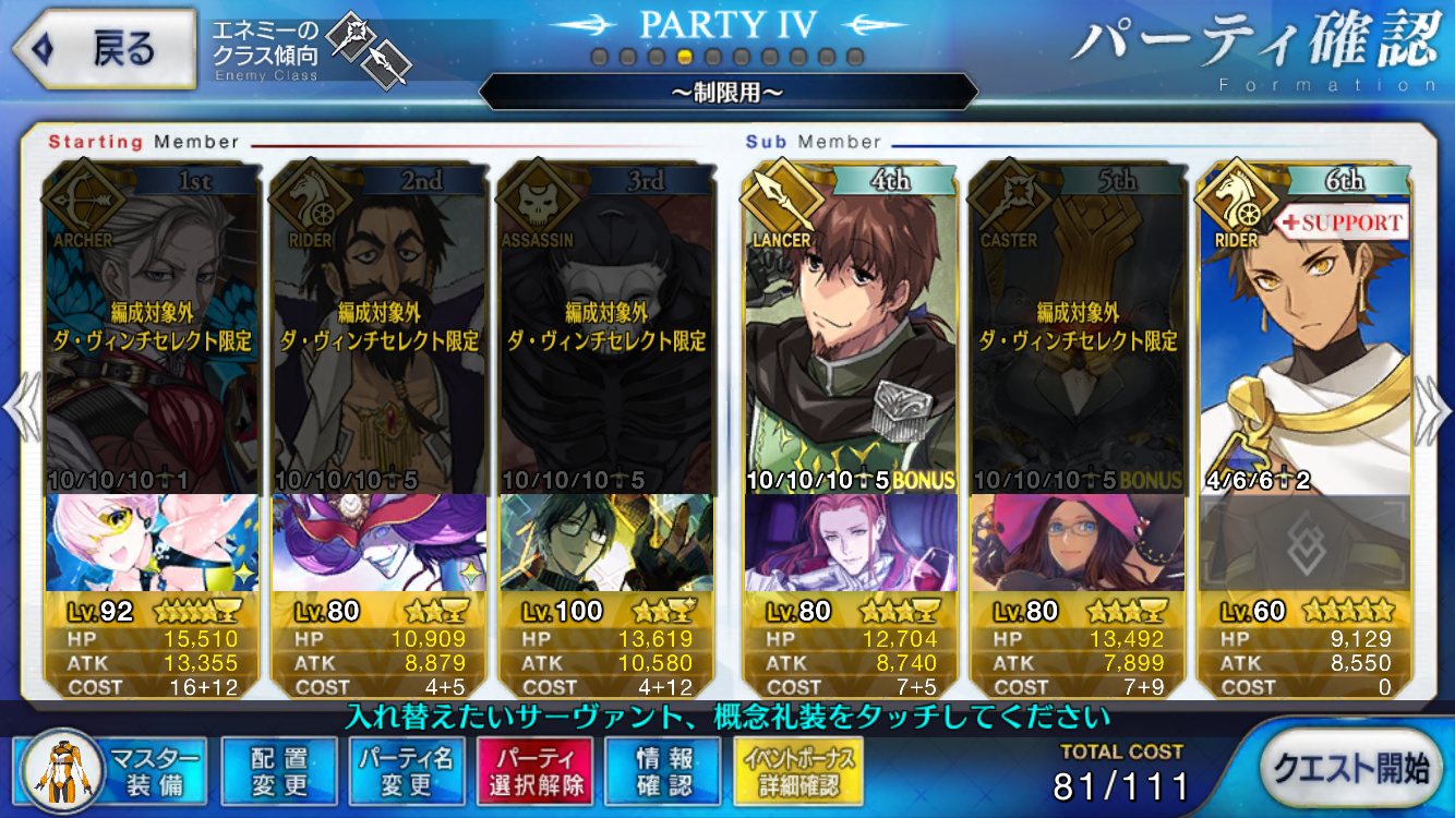 今回のサポート欄、イベ対象鯖(最終再臨済みだがレベマではない、スキルも育ててはない)か普段の育ちきってるサポートにイベ礼装かどっちがありがたいかなぁ……