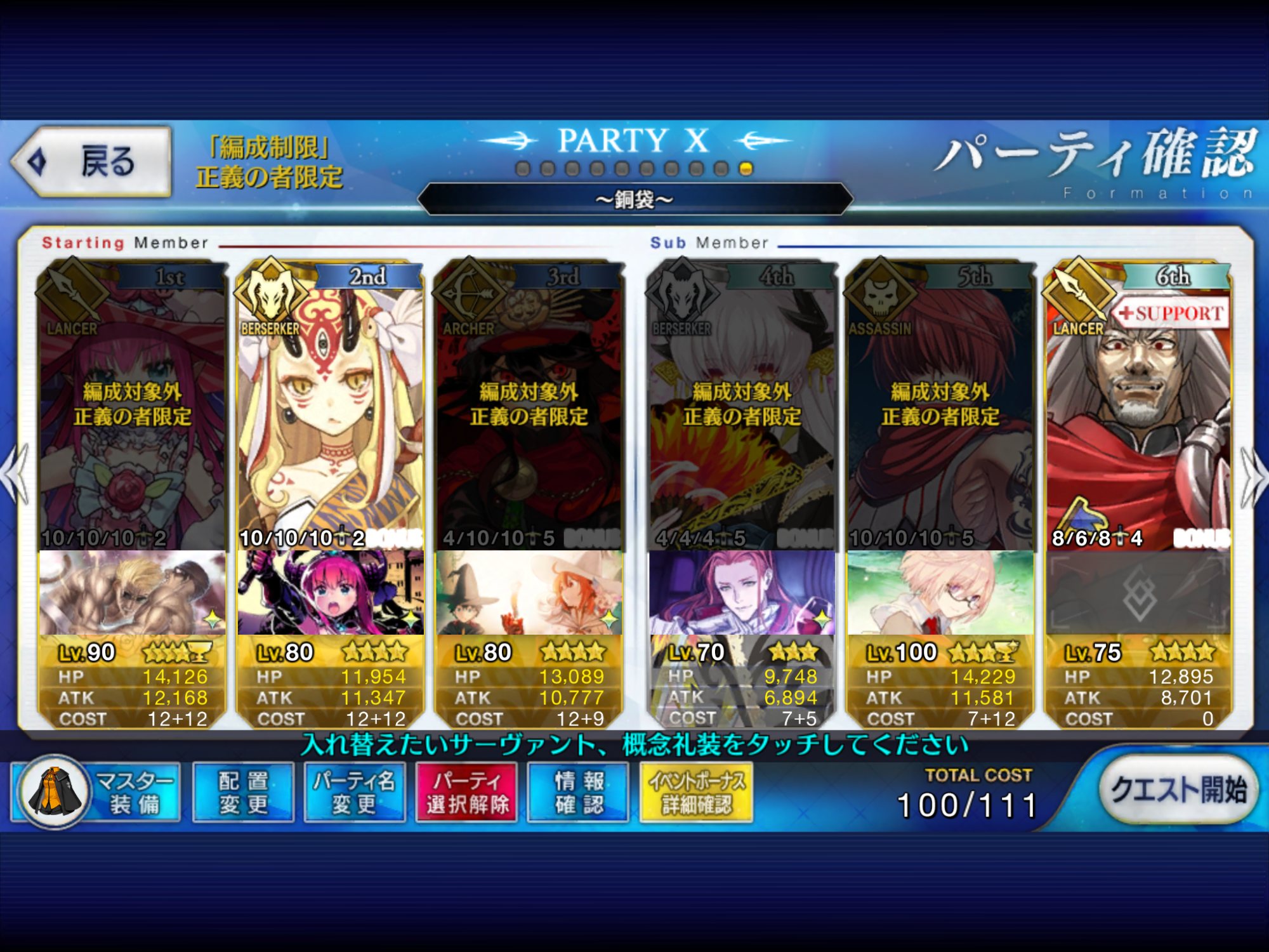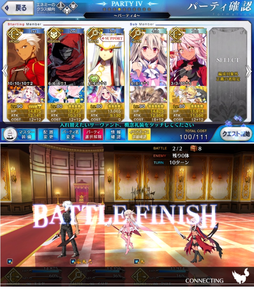 狂をキャスターで挟んでの攻略がメインなのでエクストラ枠が使えずともさして問題はなし