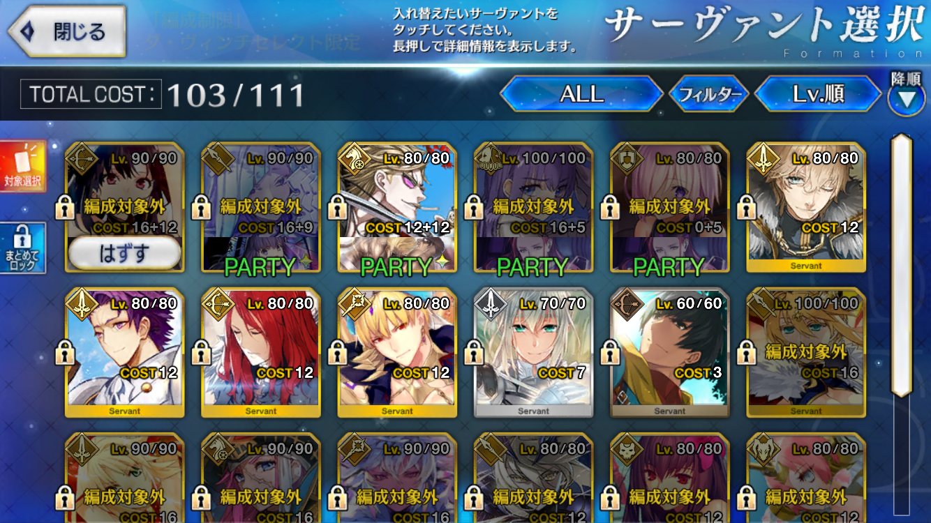 第3臨ならセーフ、第1第2はアウトとか?オジマンディアス様、全然礼装落とさないな・・・敵増加は完全に凸エリちゃん装備してるフレンドのカンストブ勇者エリチャン頼みだわ