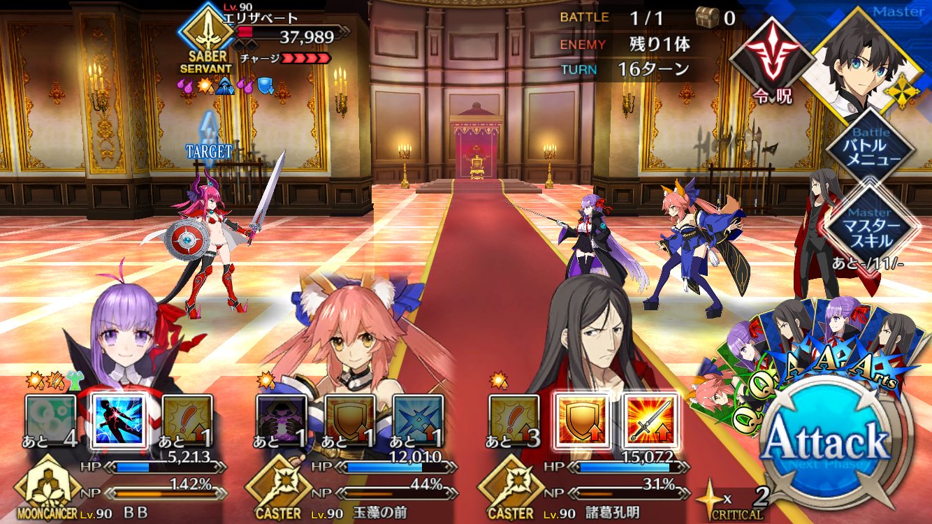 さっき戦ったら7万ぐらい回復された上にアタッカー落とされてピンチなりかけたわ…そういや正義の者限定クエってエミヤ一家(エミヤ、殺エミヤ、アイリ、イリヤ)で挑めるのか。やろうかな。