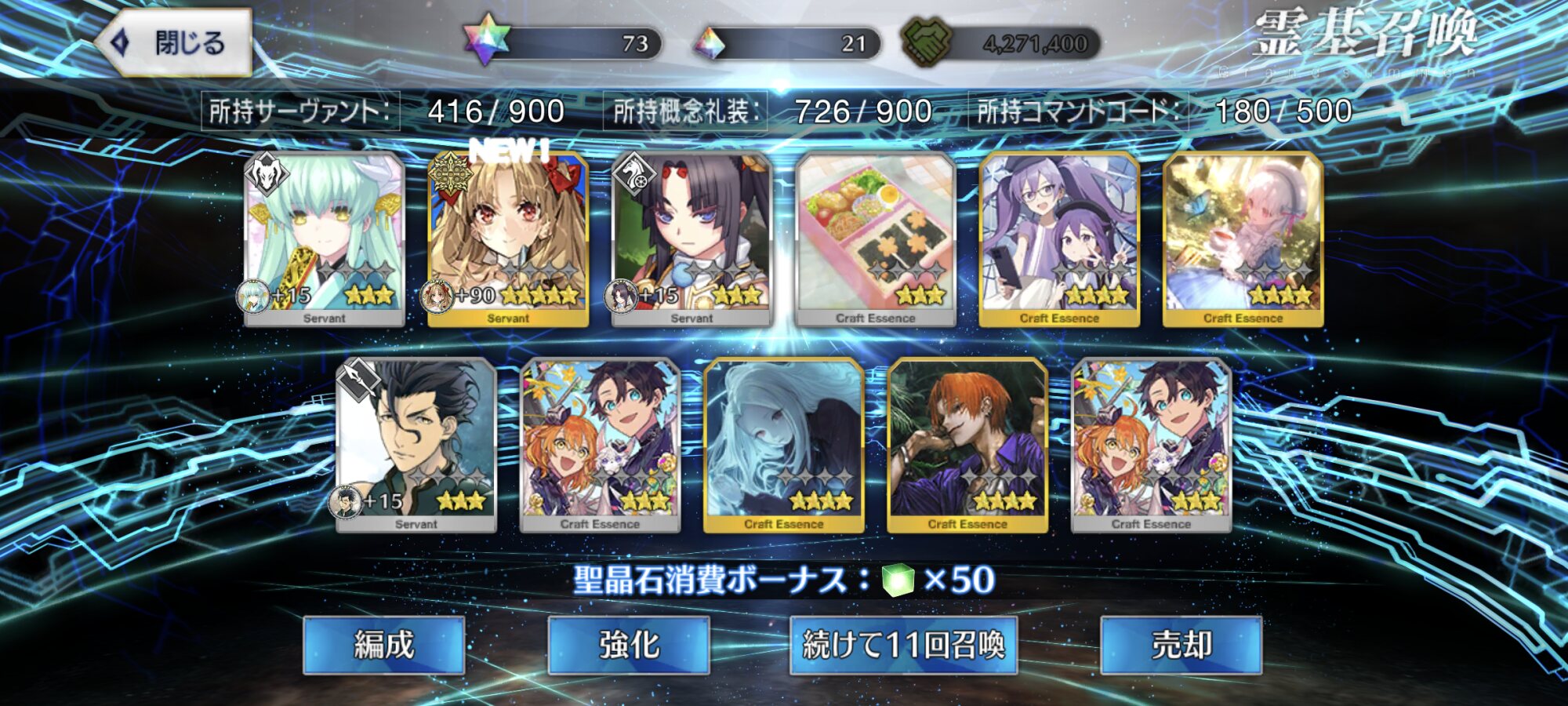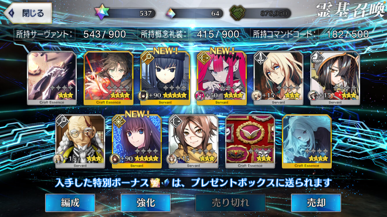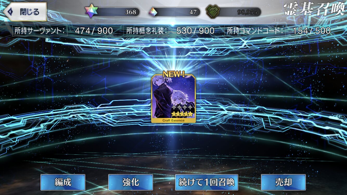 確か星4礼装は4%=1/25だから5枚引くのに400弱はまあ確率通りではあるかな割と>>970
