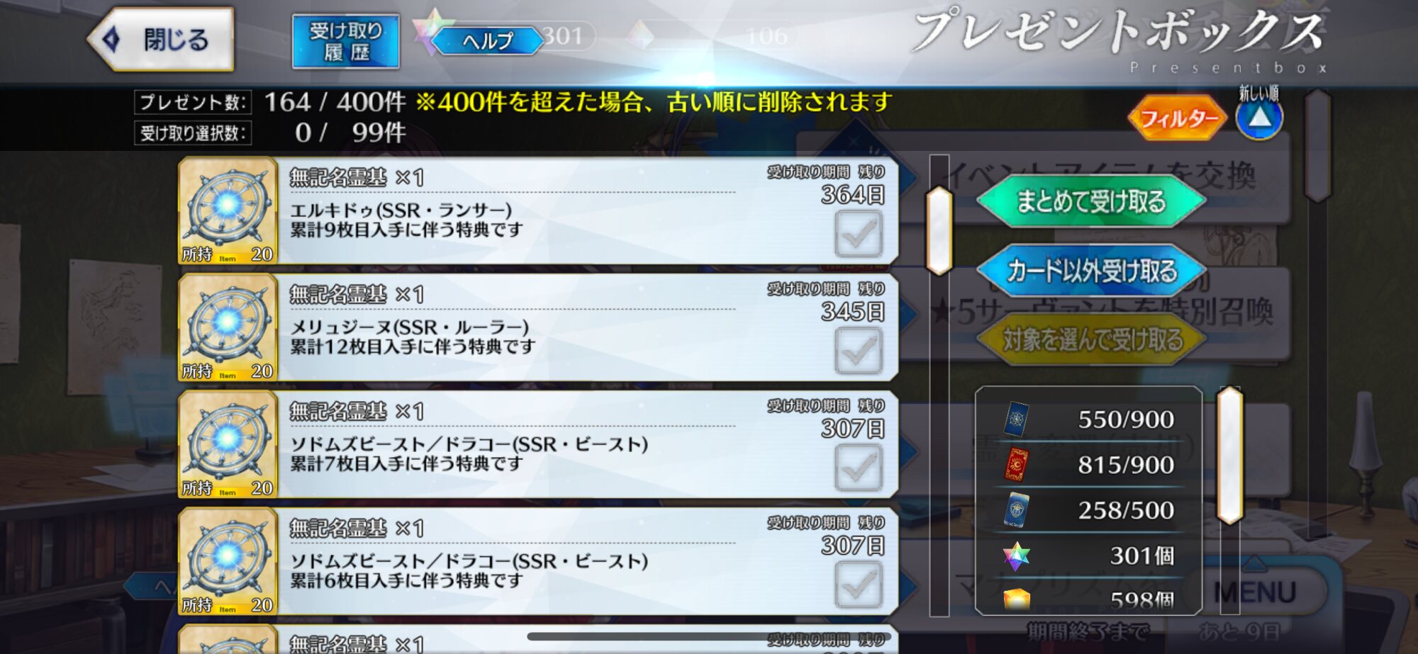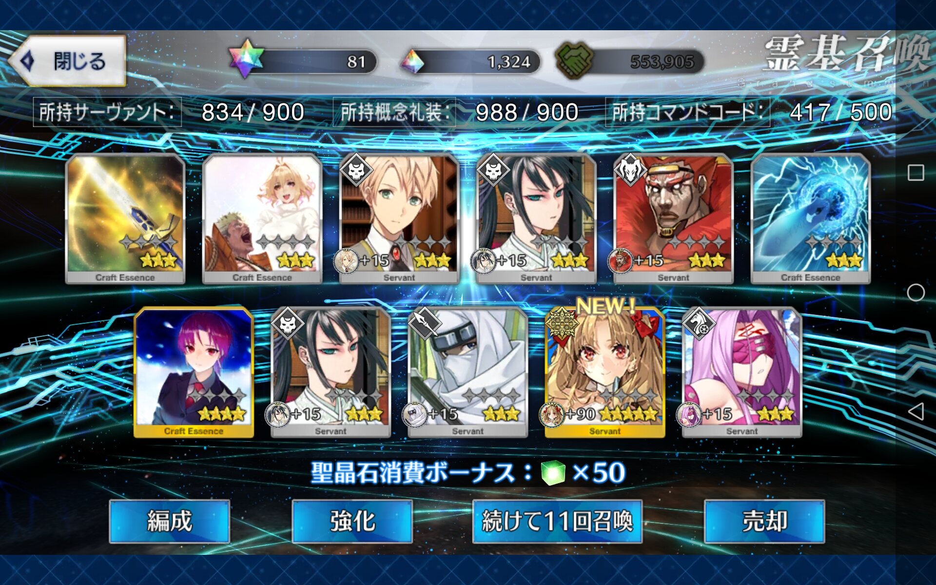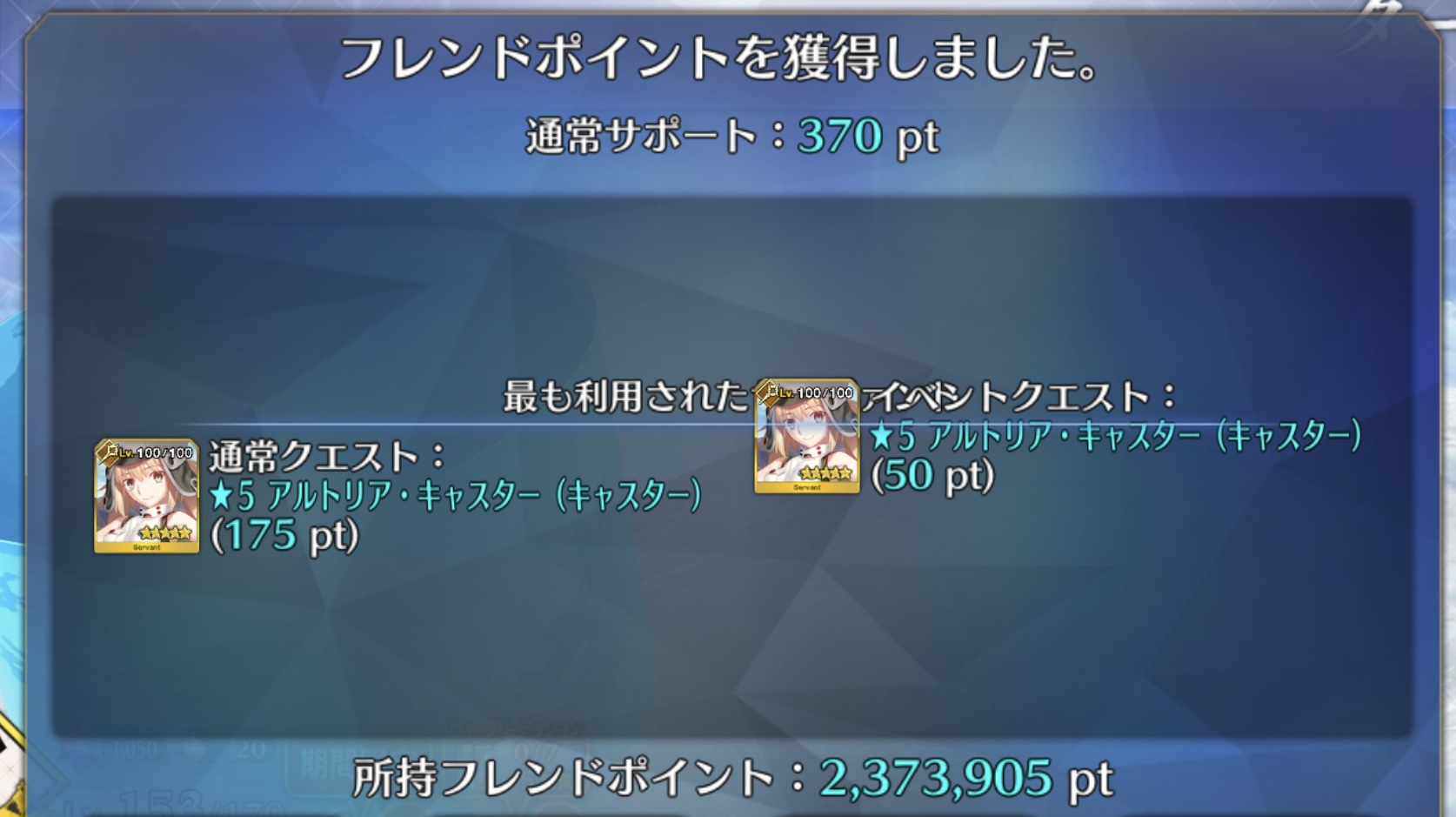 確か星4礼装は4%=1/25だから5枚引くのに400弱はまあ確率通りではあるかな割と>>970