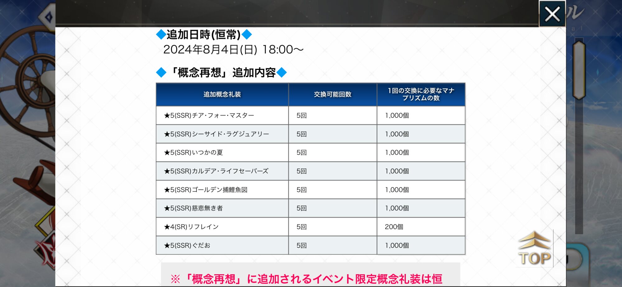 R18関連話題、よくてよ無しのガチャ結果、実装から二週間以内のシナリオ及び開催期間中のイベント内容、進行度依存の報酬、最終再臨や霊衣解放の画像や話題は専用スレにてお願いします。