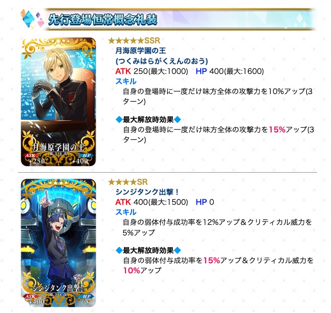 むしろコイン補てんみたいな感じでガチャピックアップ増えたらおそらくエレナさんの人としては勝ちよ実際クラススコア込みならBusterクリティカル+50%、Artsクリティカル+70%+Quickクリティカル+100%が常時加算されるようになるのは控え目に言って恐ろしい