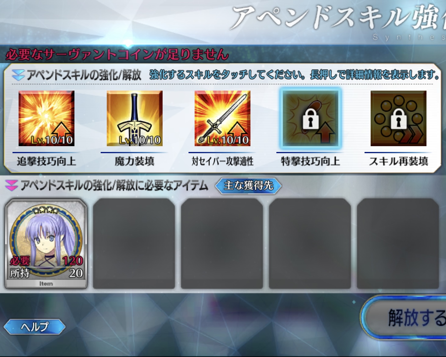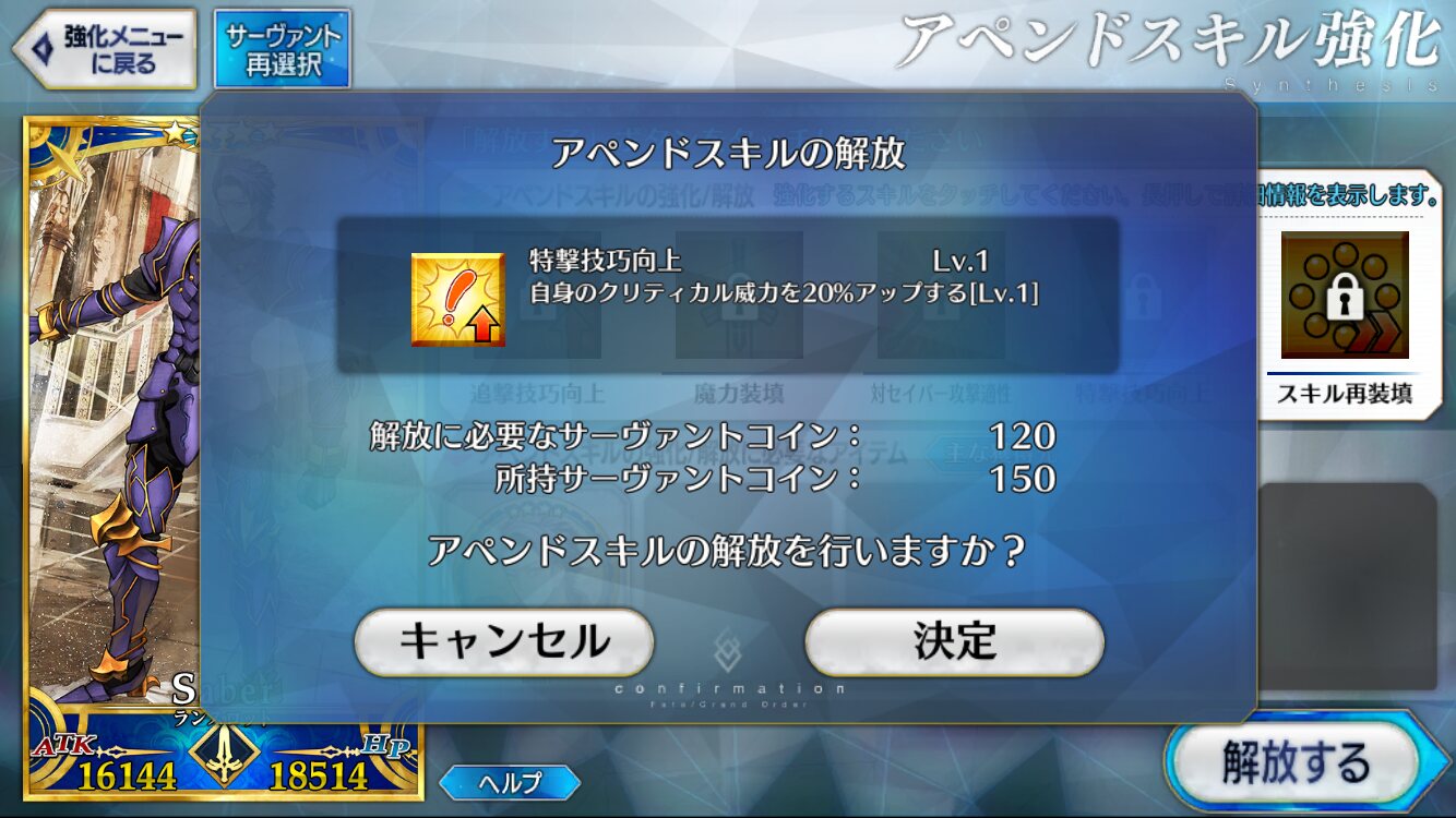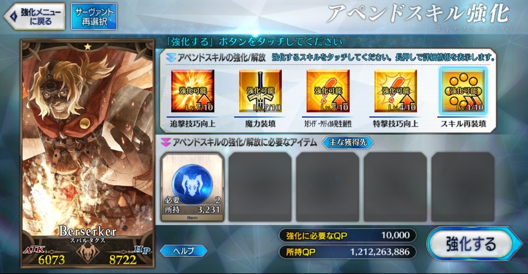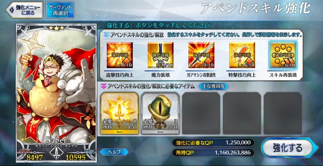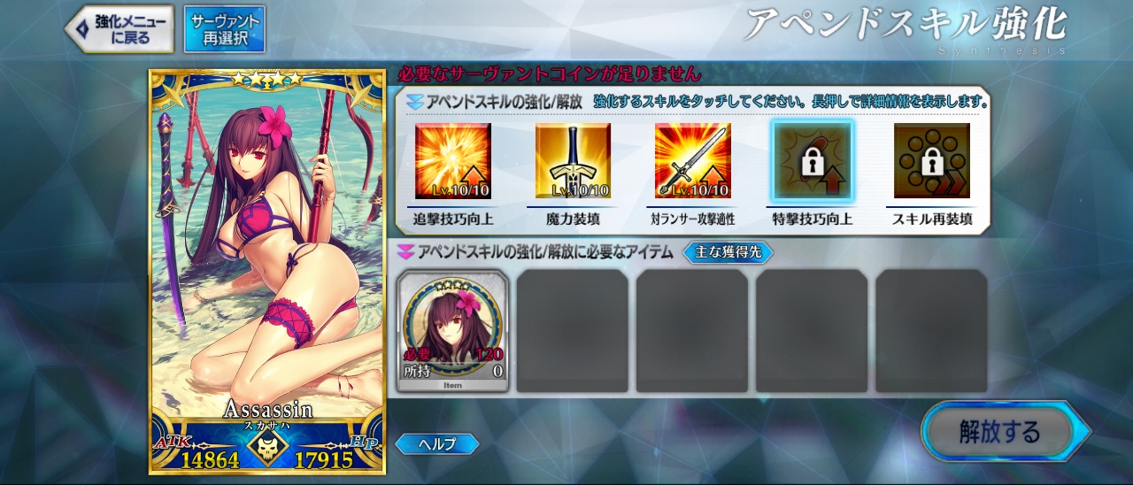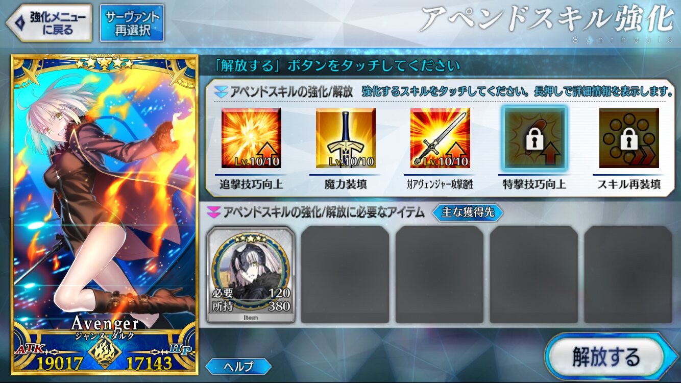 宝具レベルが1か2ばかりな自分はアペンドよりレベル優先だな、4倍キャンペーンのうちに120に近付けるぜ>>923