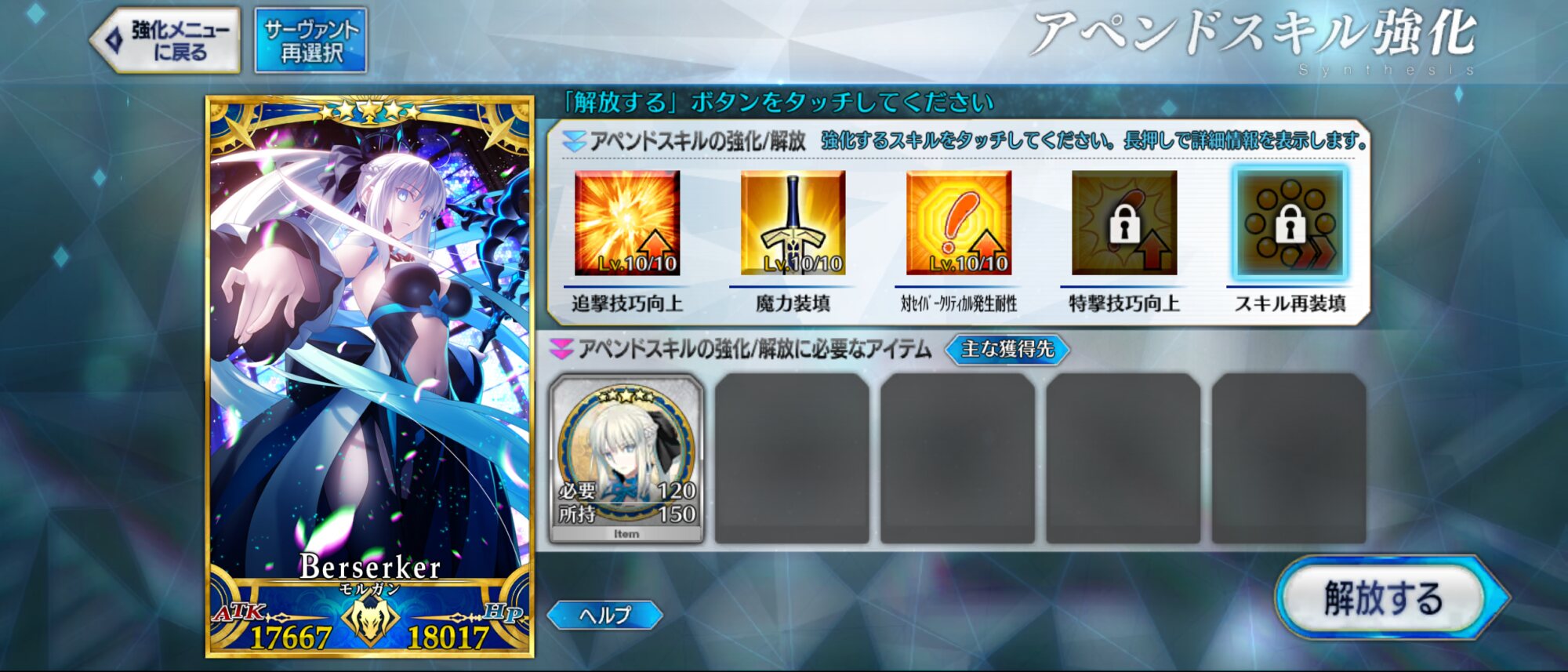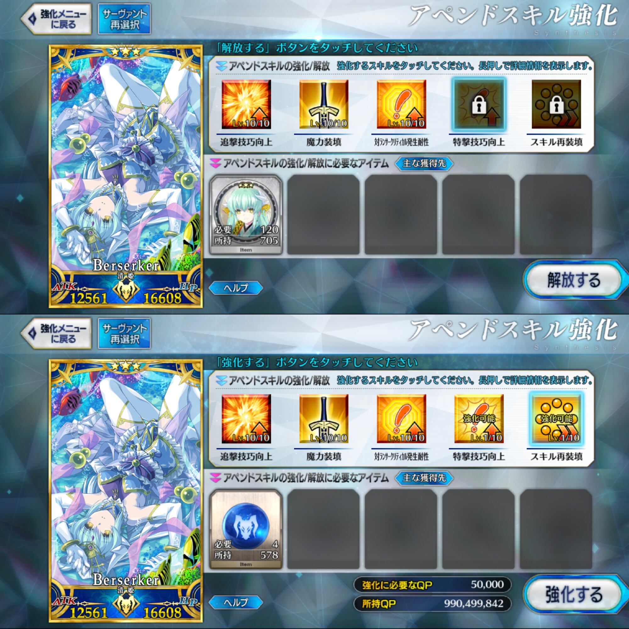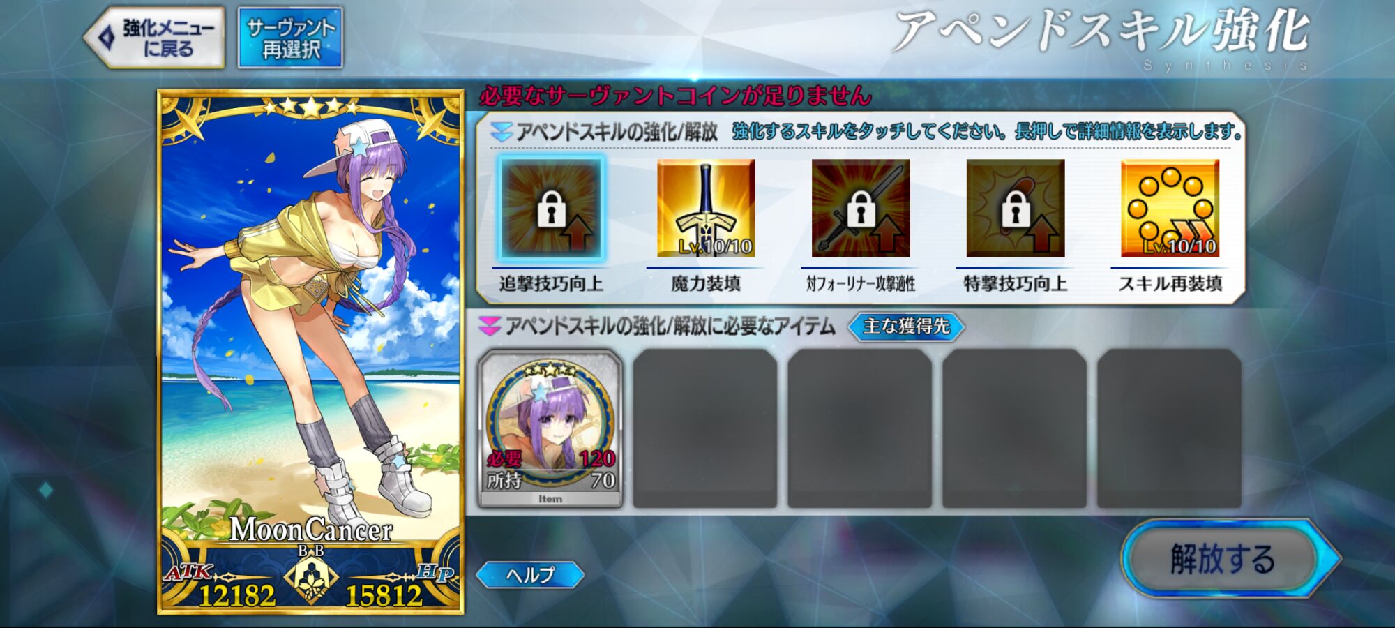 宝具レベルが1か2ばかりな自分はアペンドよりレベル優先だな、4倍キャンペーンのうちに120に近付けるぜ>>923