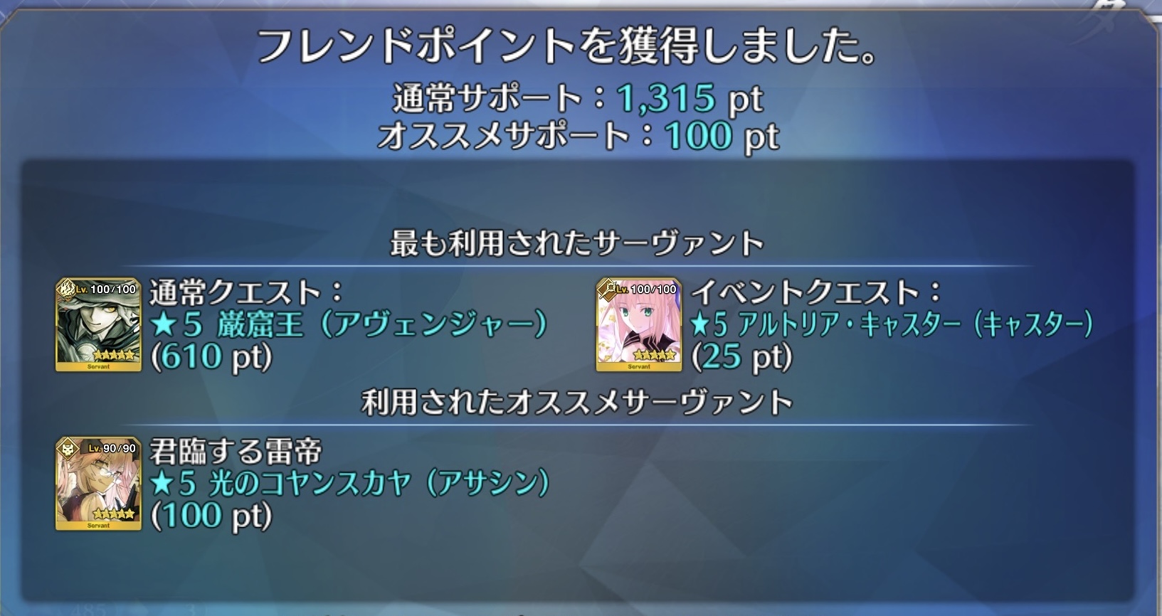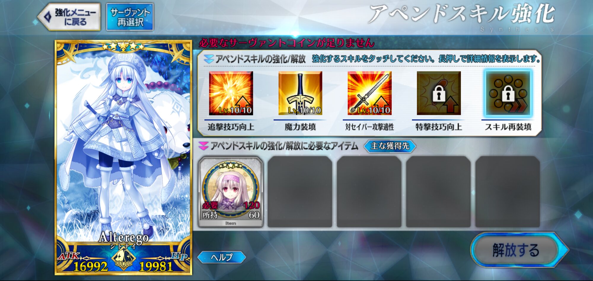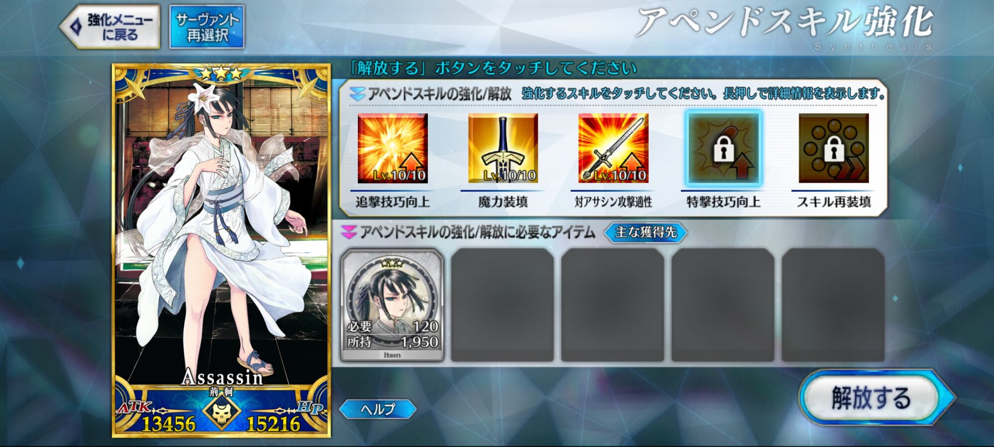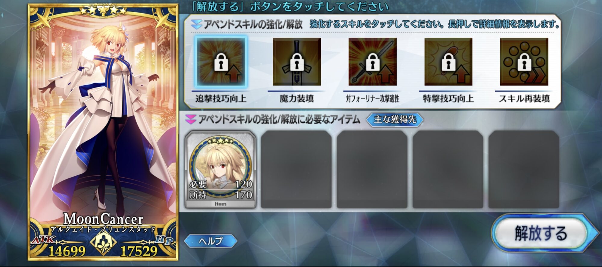 宝具レベルが1か2ばかりな自分はアペンドよりレベル優先だな、4倍キャンペーンのうちに120に近付けるぜ>>923
