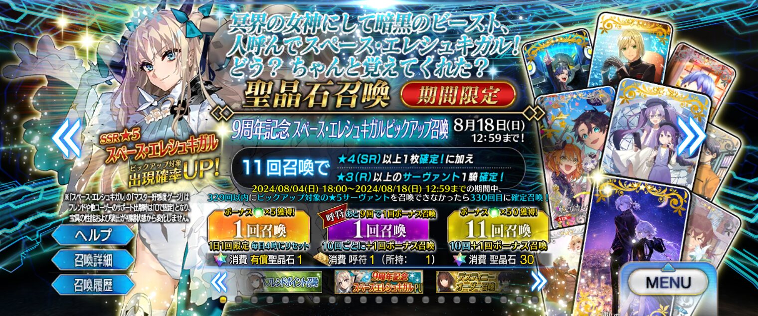 スペースイシュタルが2人居る上でスペースエレシュキガルも居るのややこしいな・・・今年の強化金アサシンあるけどジャックちゃん期待していいかな・・・