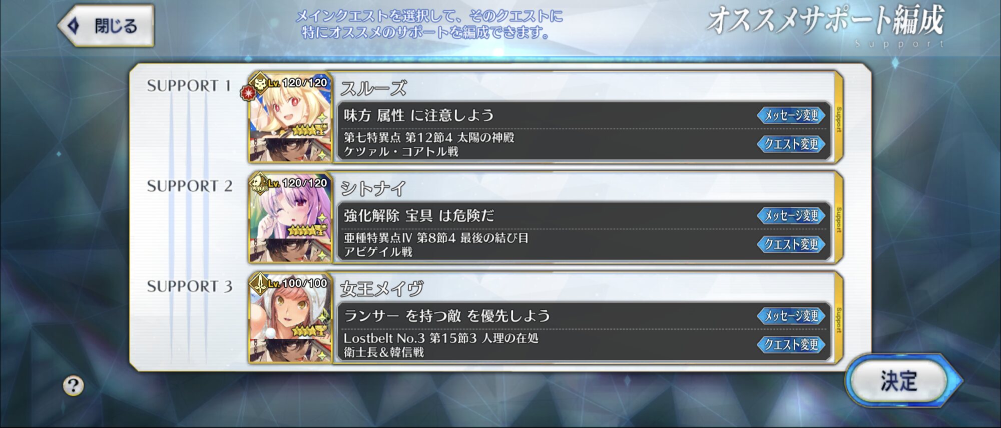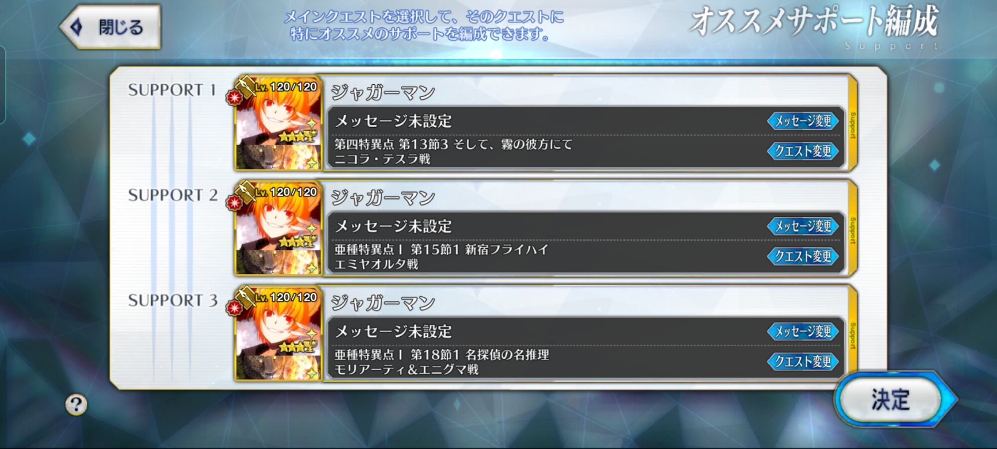 ボス相手にはフレンドのジャンヌを借りてジャンデルセンシステムが鉄板そういえばおすすめサポートってゲスト固定バトルは指定できるの?