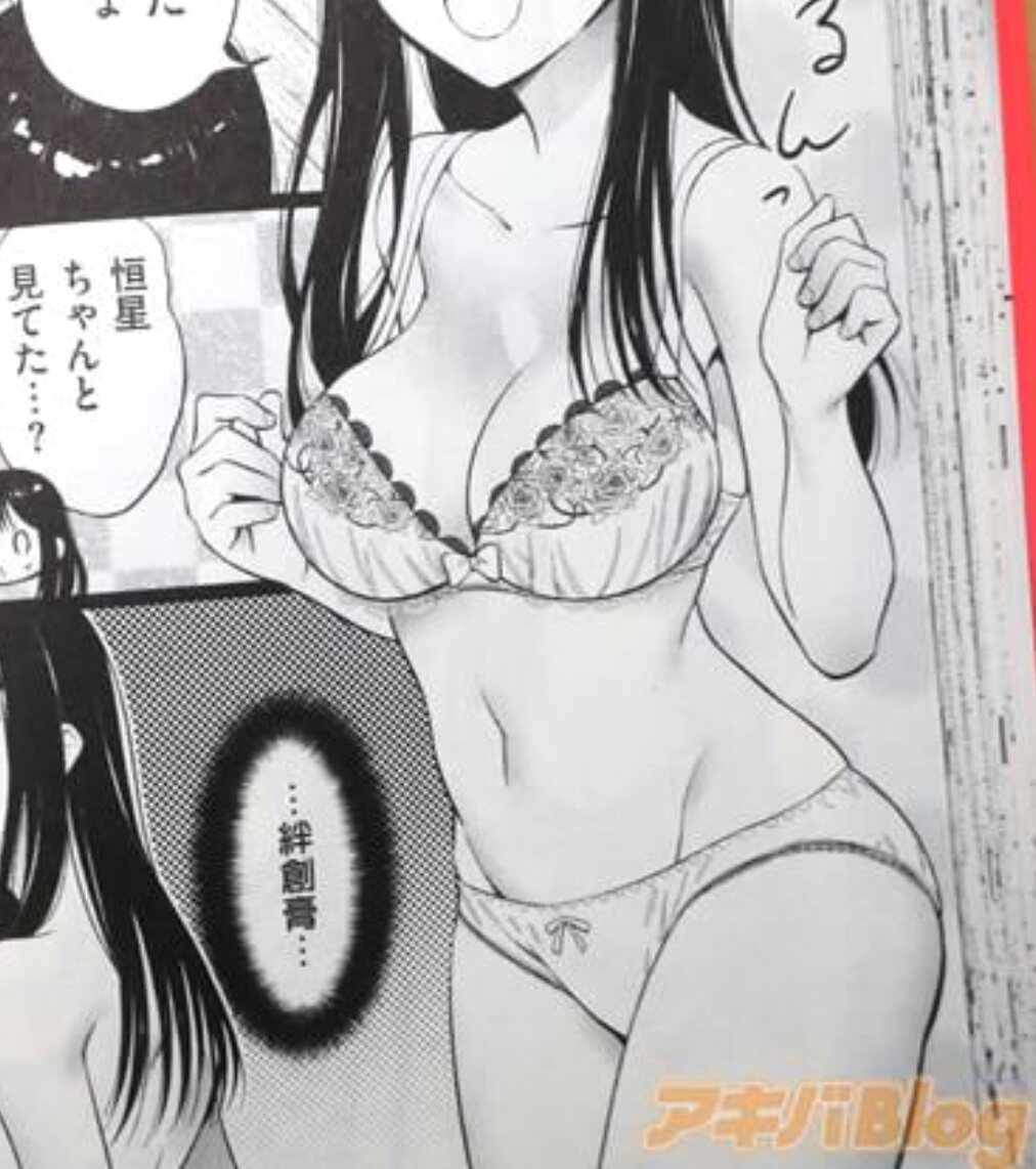 「彼女が身に付けているのは白い3/4カップブラ、カップの上半分には花をあしらった刺繍が施されており、上部に添うように、黒い半円のレースが並んでいた。下半分はギャザーによって波立つ皺が白の陰影をより濃くして清楚さを示しつつ、中心に置かれたリボンは可愛らしいが、太いベルトで支える彼女の豊かな胸と相俟って煽情的(セクシー)に見えた」