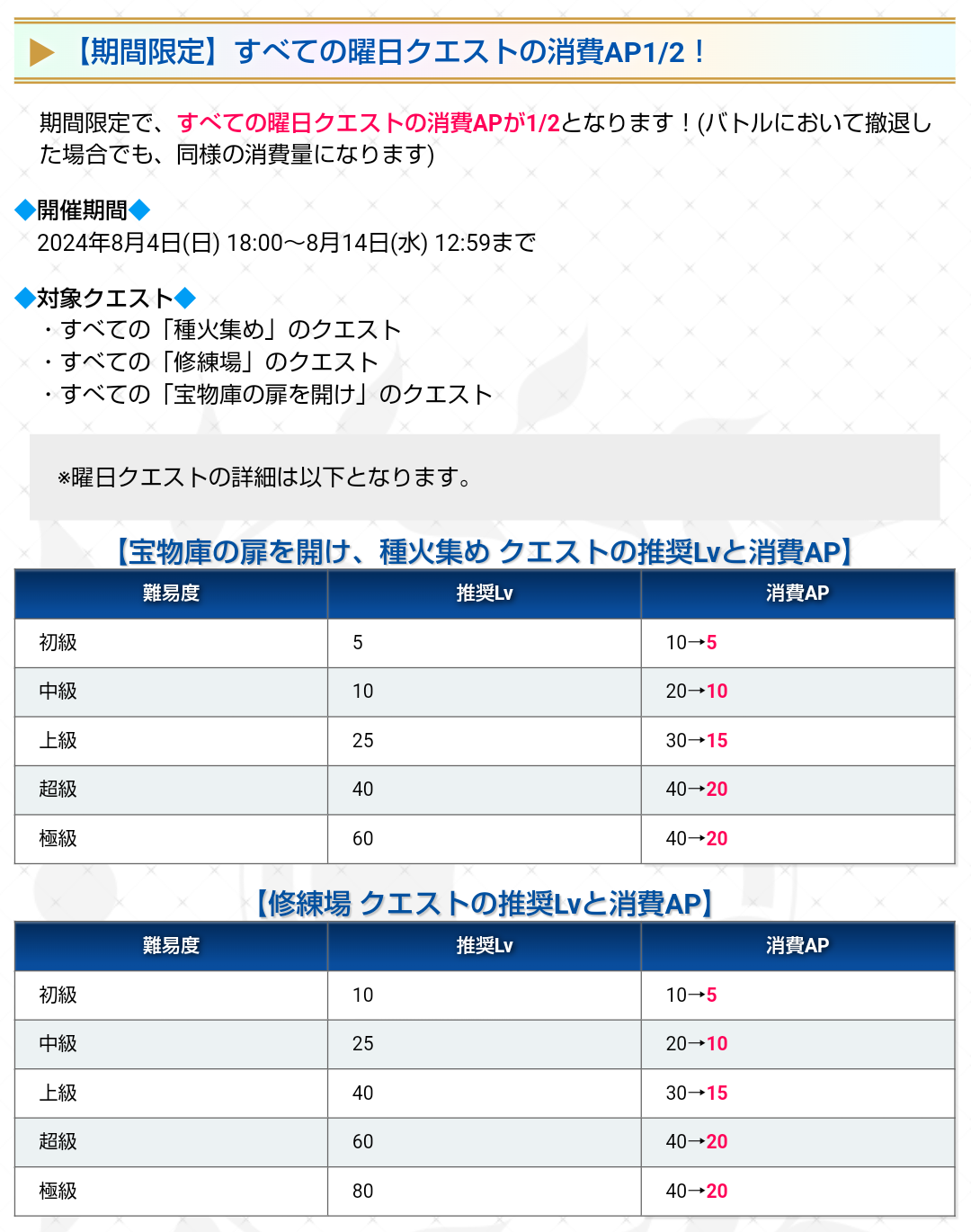 R18関連話題、よくてよ無しのガチャ結果、実装から二週間以内のシナリオ及び開催期間中のイベント内容、進行度依存の報酬、最終再臨や霊衣解放の画像や話題は専用スレにてお願いします。